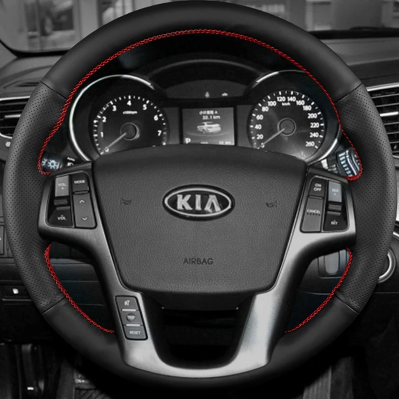 Coprivolante in pelle artificiale nera Coprivolante per auto cucito a mano per Kia Sorento 2009-2013...
