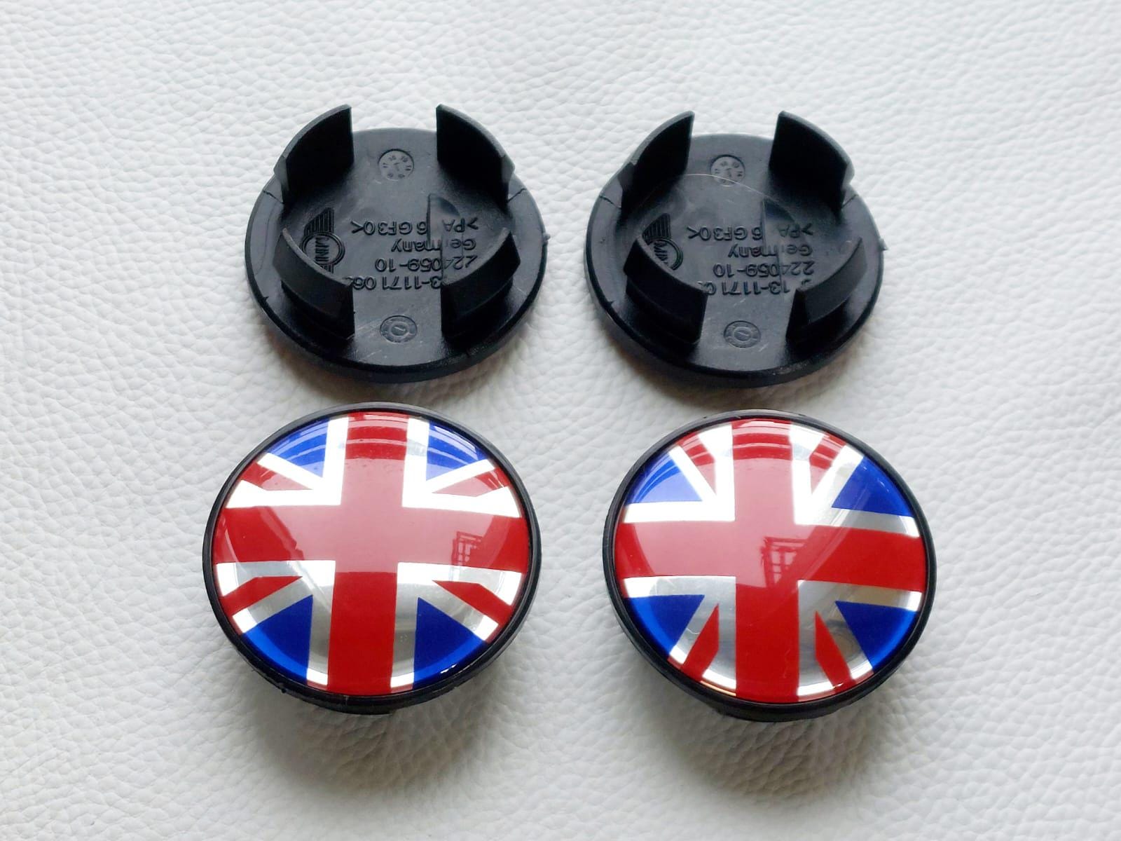 - 4 coprimozzi con logo della bandiera inglese - Misurazione del diametro esterno: 54 mm/2,13 pollic...
