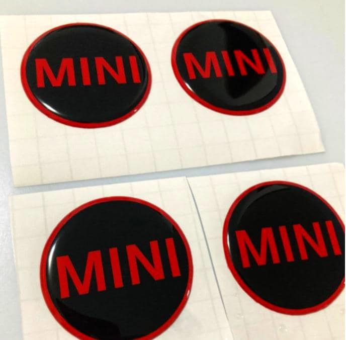 Set 4 Logo Stemma Adesivi Coprimozzo Mini Cooper in 3D Misure 48/50/52/54/56/58/60mm Di facile appli...