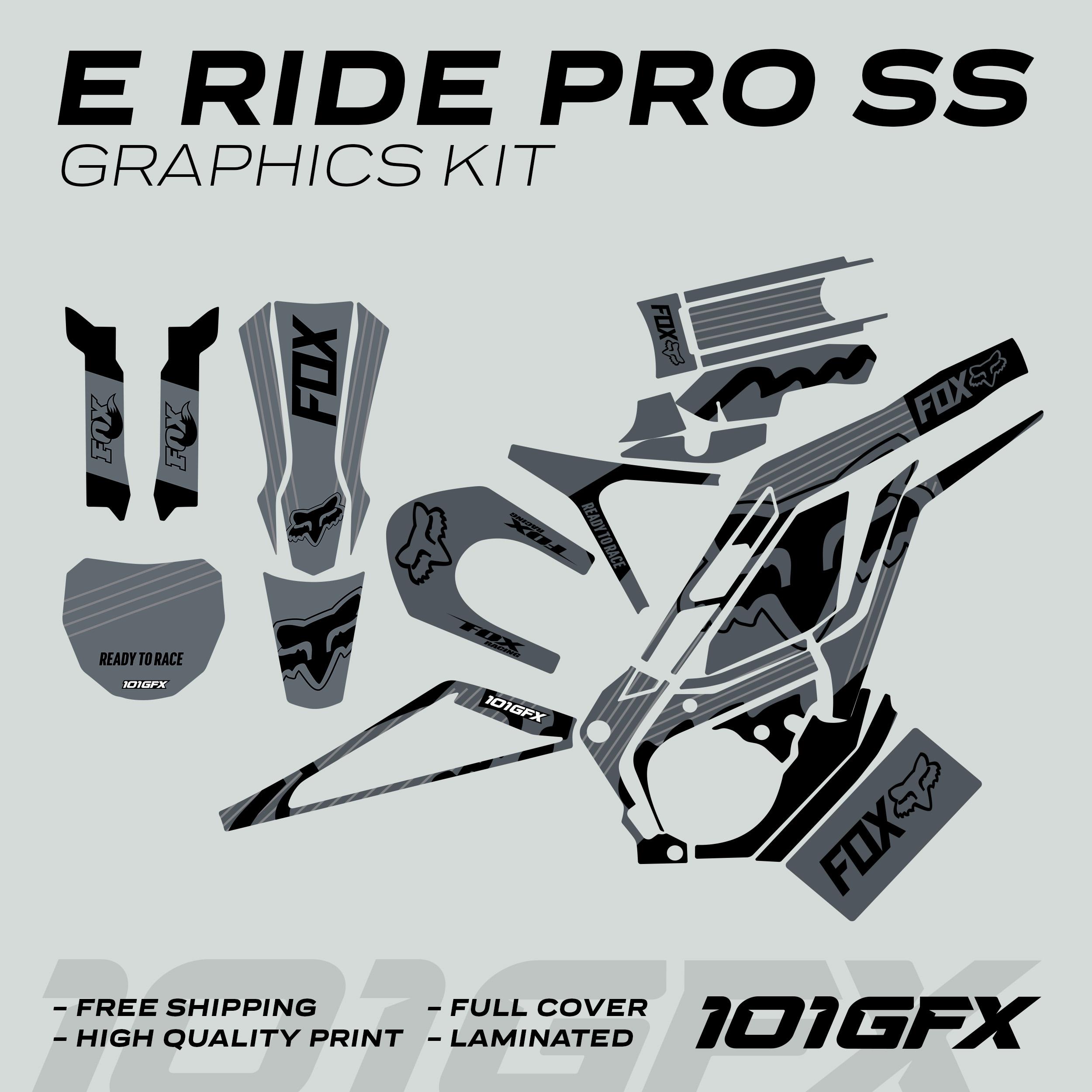 E Ride Pro SS Kit grafico FOX R Stripes Grigio Nero Decalcomanie Ad...