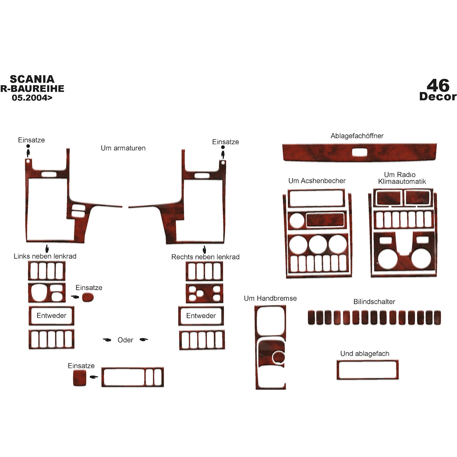 Kit rivestimento cruscotto effetto legno per Scania Kit rivestiment...