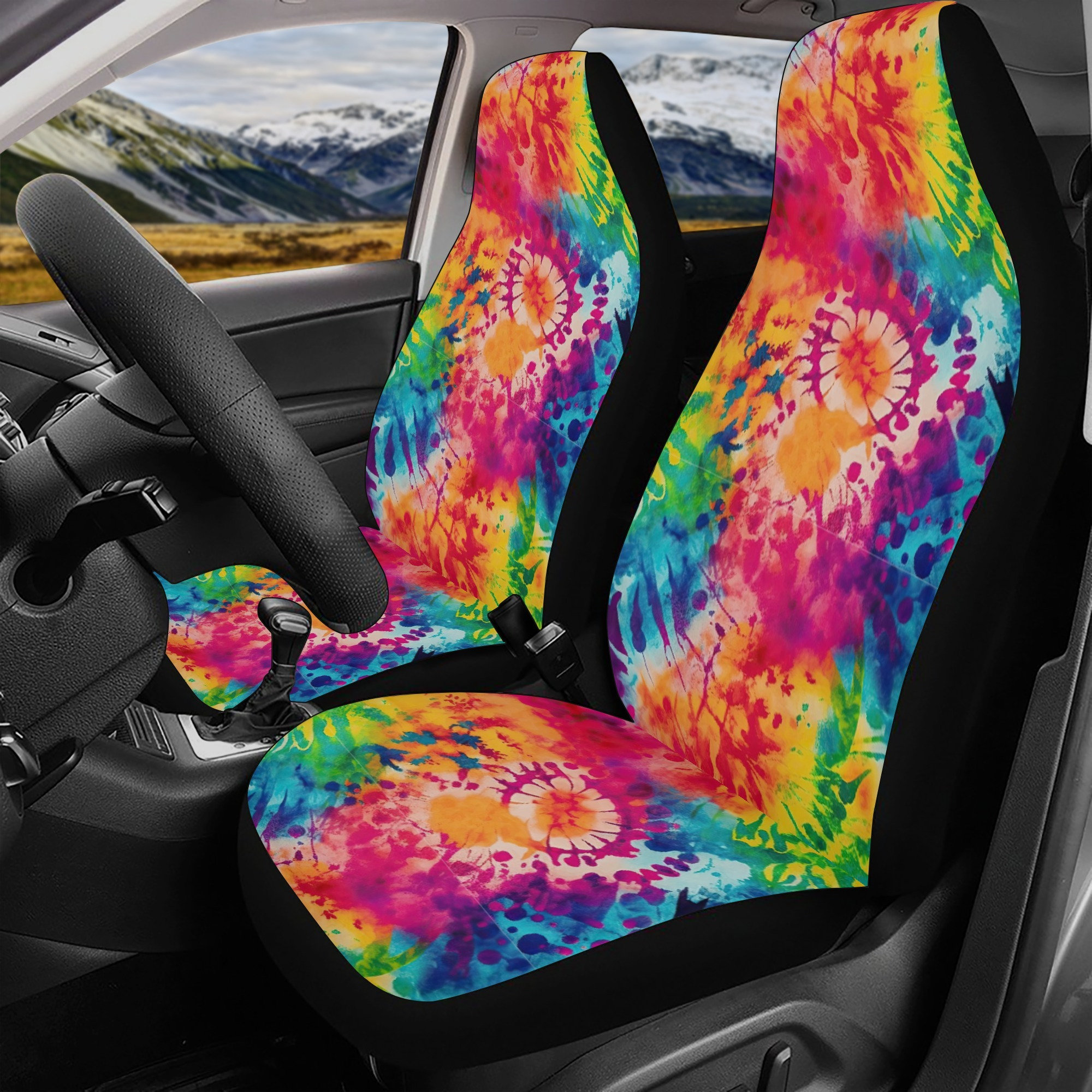 Set coprisedili per auto Tie Dye per veicoli Coprisedili arcobaleno...