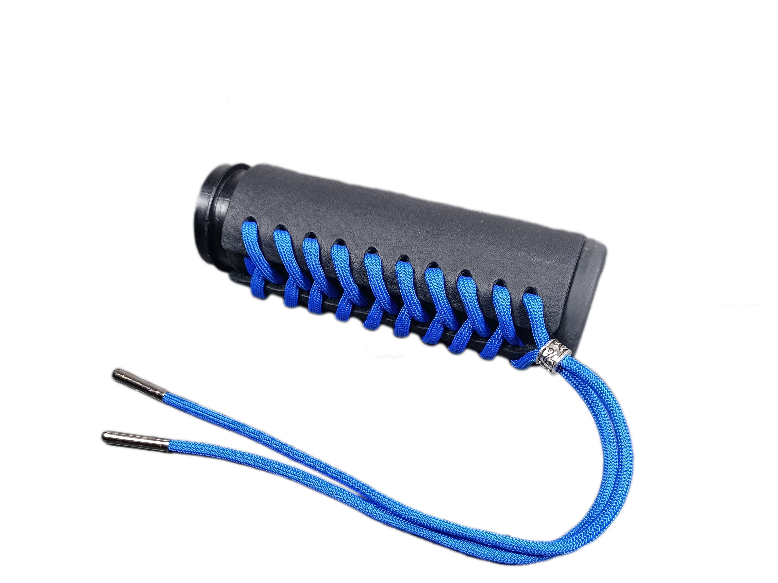 Copri-impugnatura in pelle nera con paracord blu, realizzati su mis...