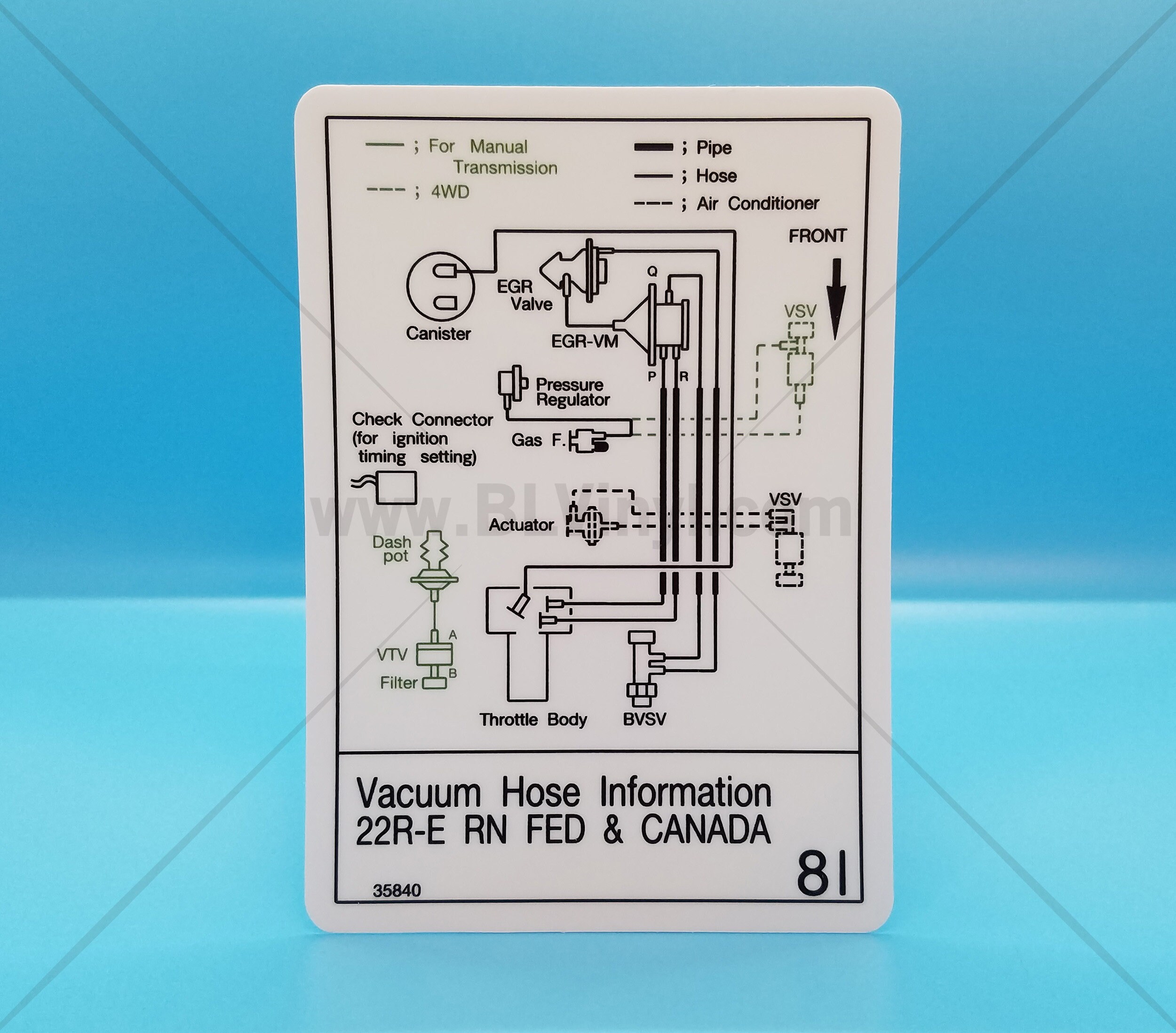 1987 22RE Vacuum Hose Information Decalcomania FED e Canada per il cofano del tuo Toyota 4Runner o P...