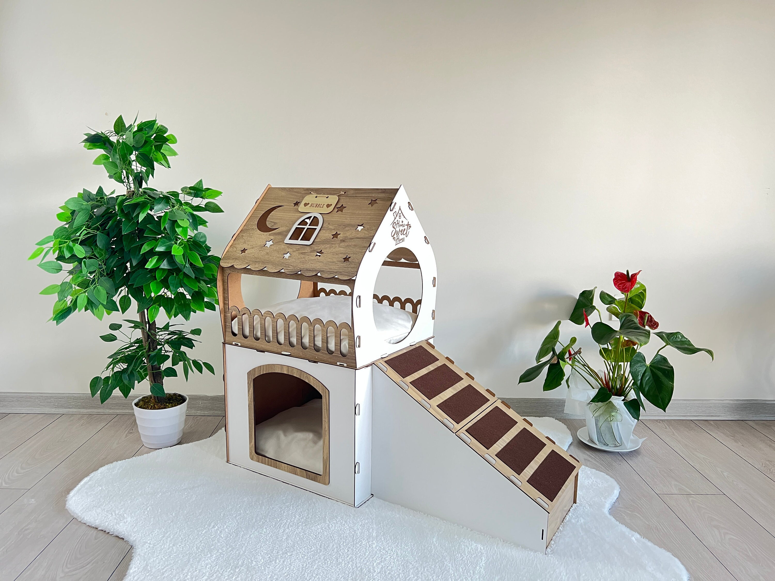 Casetta per conigli con scale e ringhiera | Casetta per conigli nan...