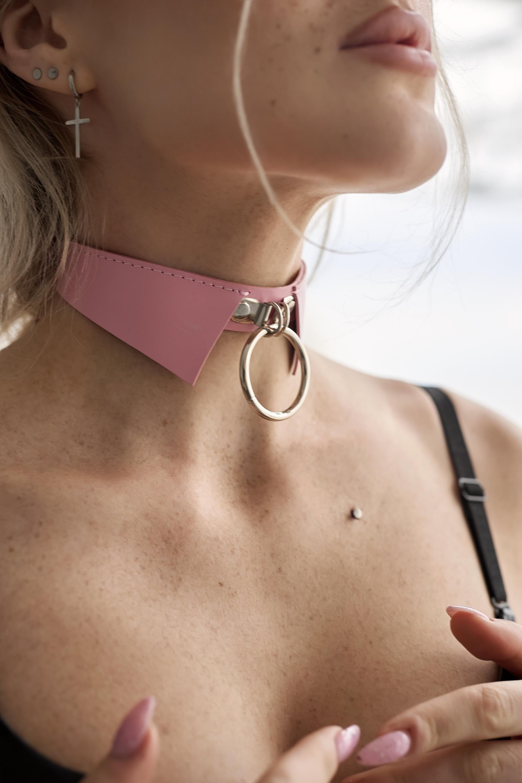 Collare girocollo in pelle con anello a O, girocollo in pelle, coll...