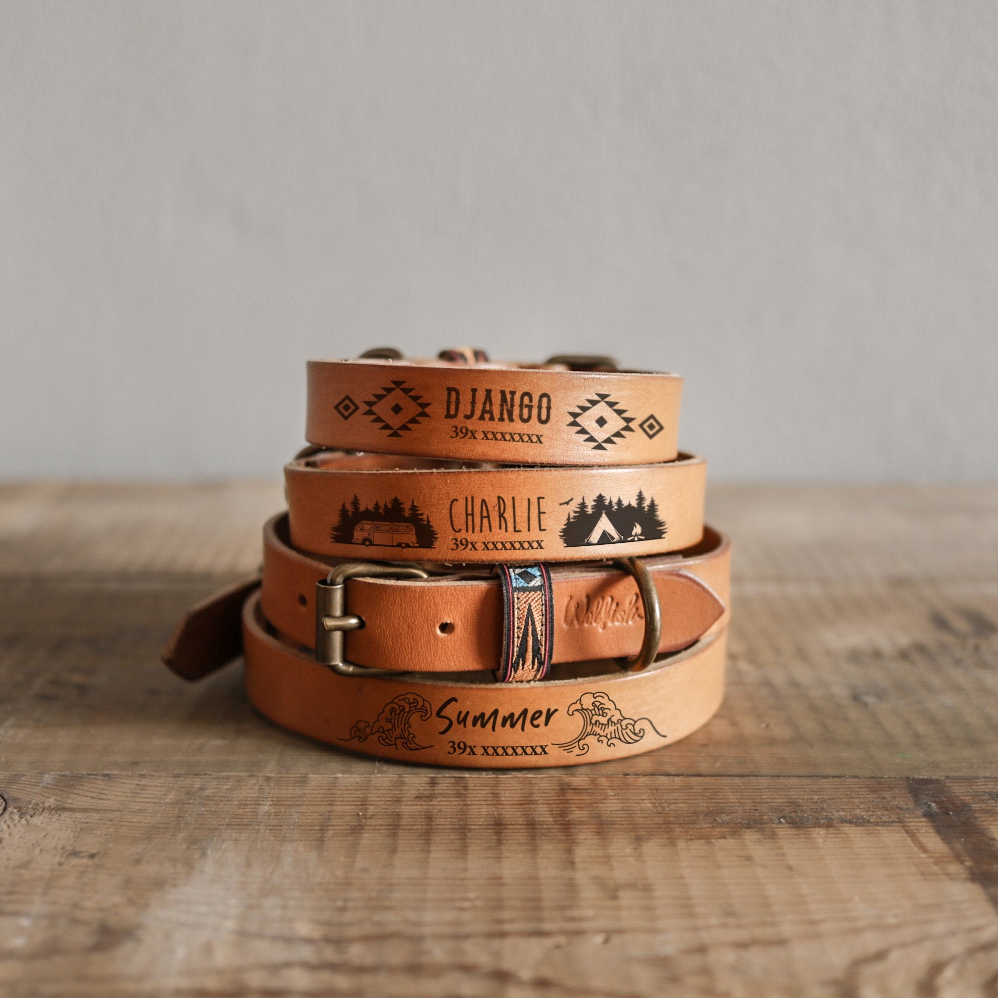 Custom Name Leather Collar. Laser Name Dog Collar. Leather Collar w...
