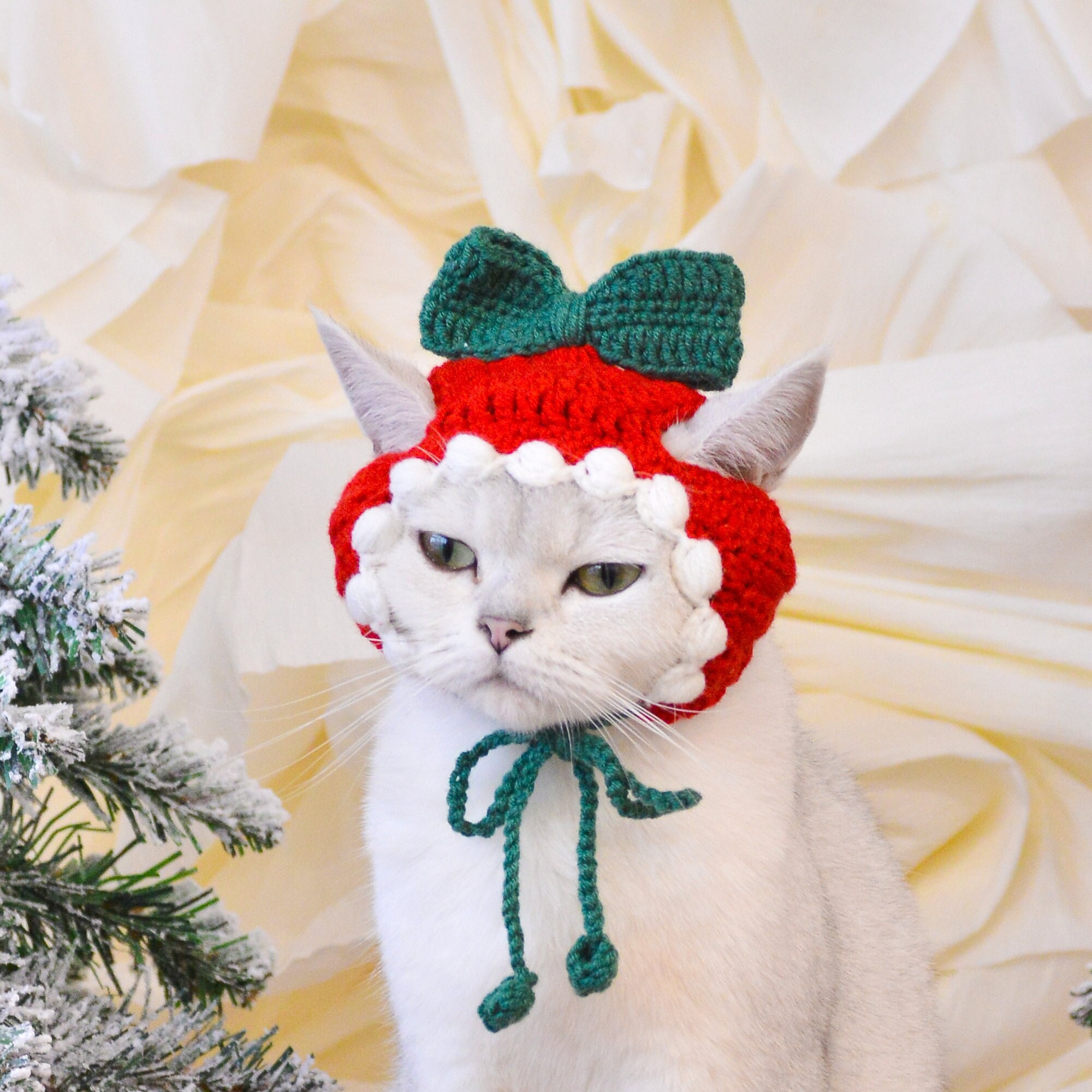 Whisker Wonderland: cappello rosso per animali domestici con collare - Eleganza natalizia realizzata...
