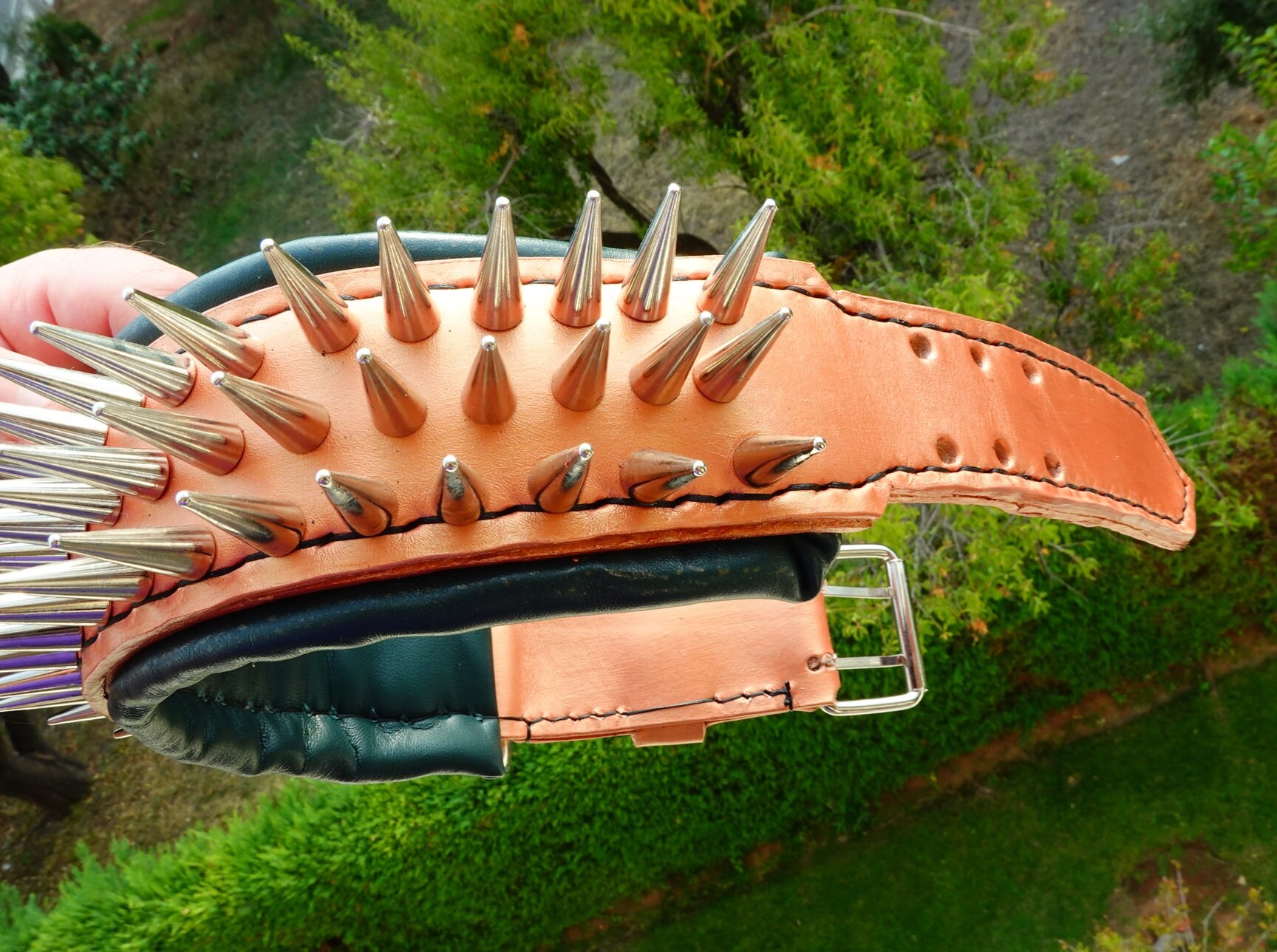 Collare per cani largo con punte, imbottito in feltro di lana con p...