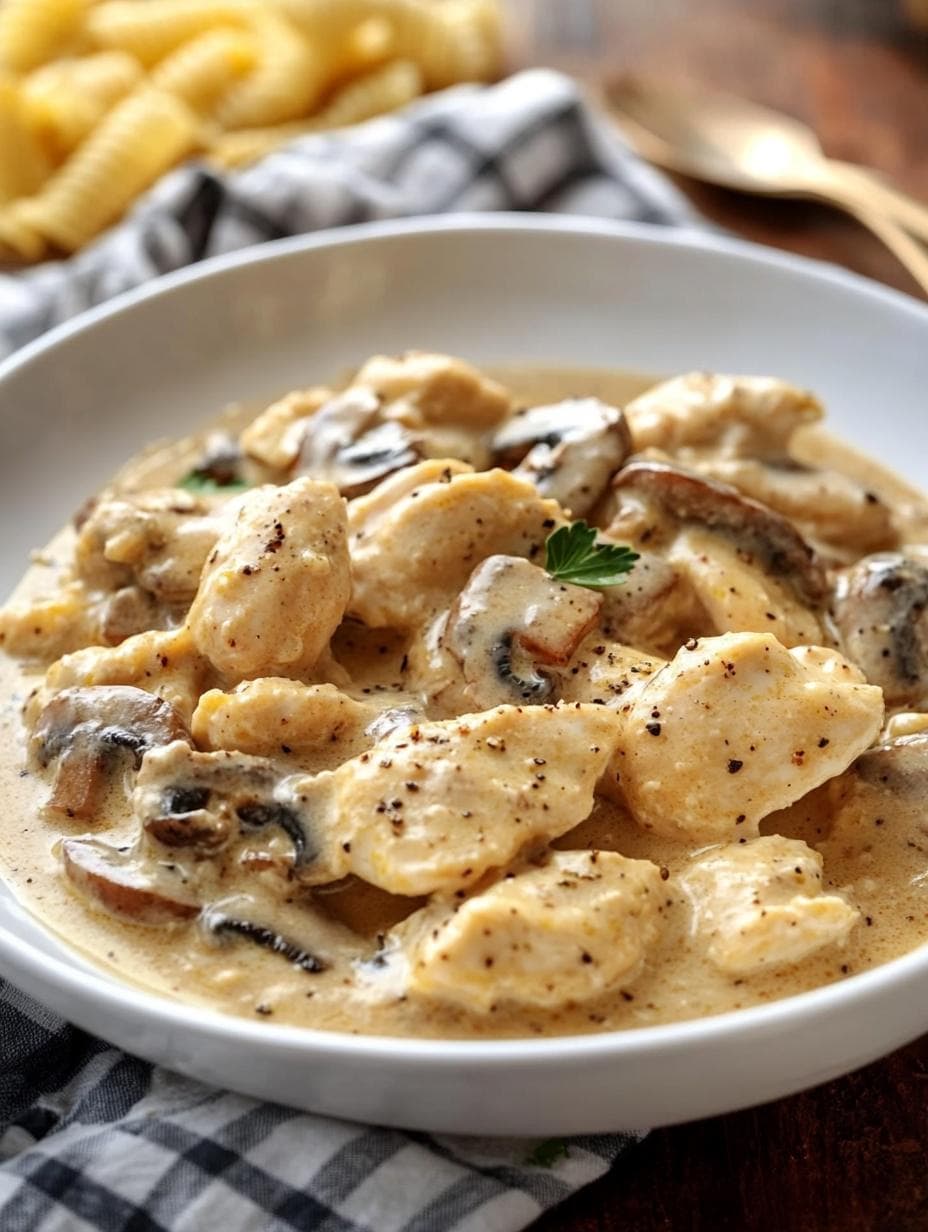"Ricetta facile e ricca di pollo cremoso ai funghi (PDF stampabile) Lasciatevi conquistare dai ...
