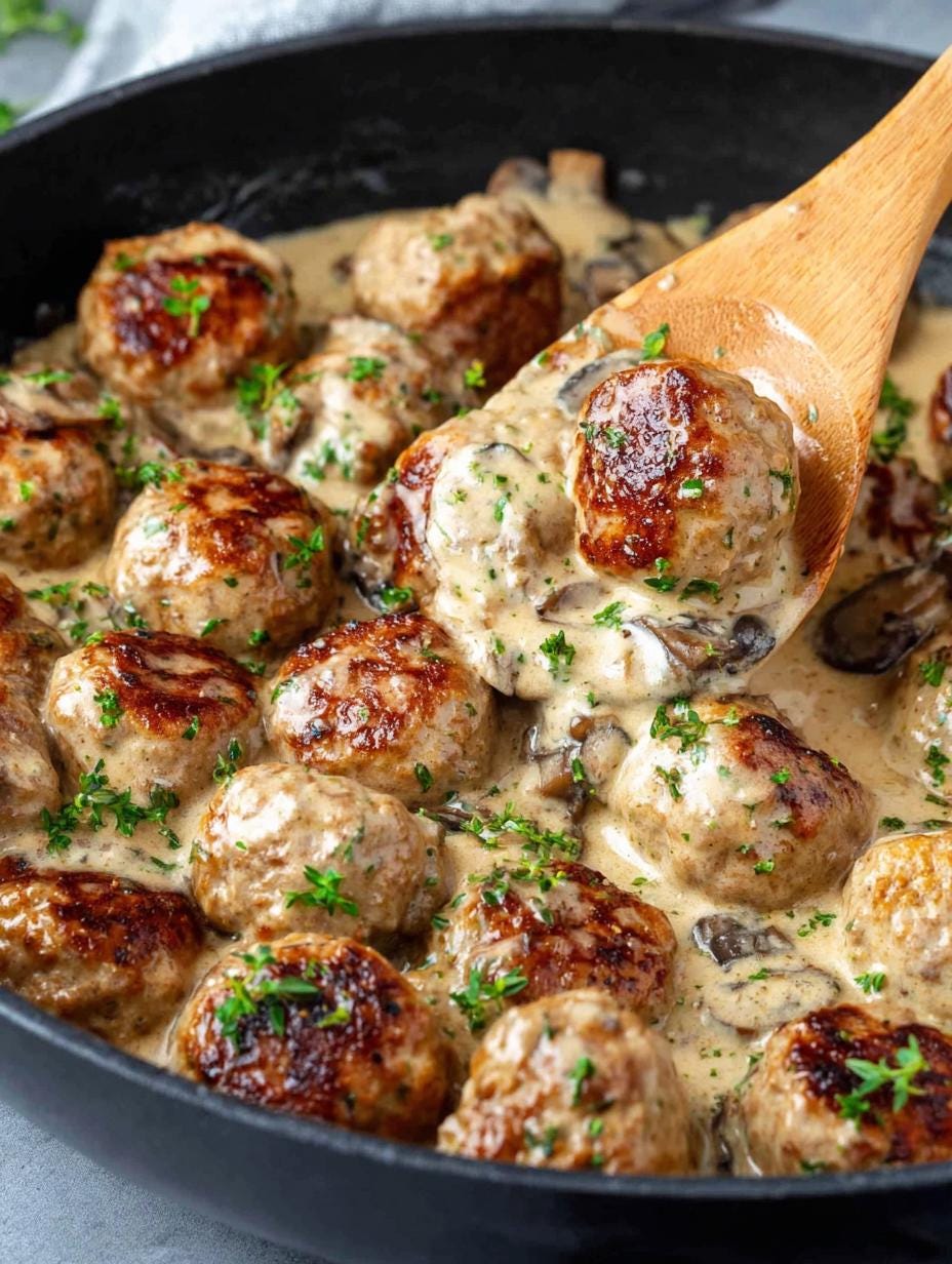 Concedetevi un po' di comfort con questa ricetta PDF per polpette di pollo cremose ai funghi Queste ...