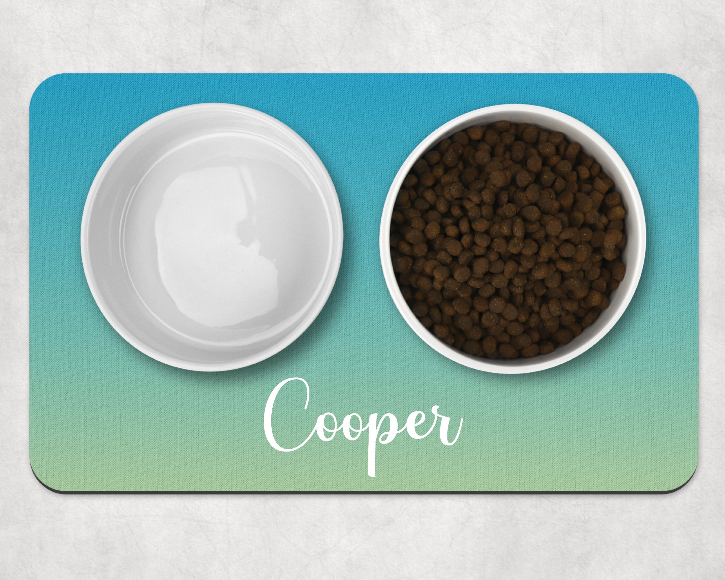 Blue & Green Ombre Pet Bowl Mat, Customized Bowl Mat, Customize...