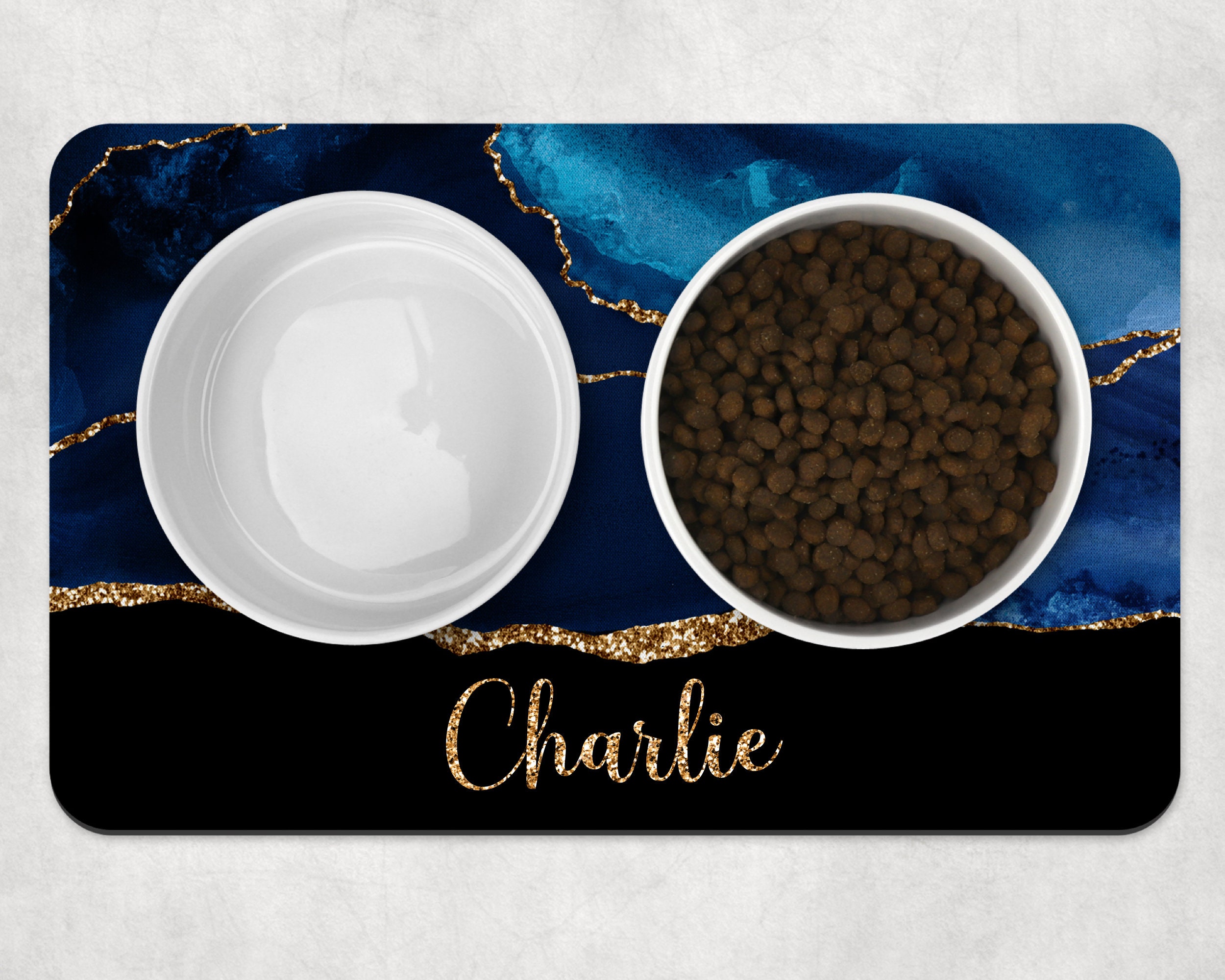 "Blue Agate Design Dog Bowl Mat / Personalizzato Pet Bowl Mat / Customized Bowl Mat / Dog Food ...