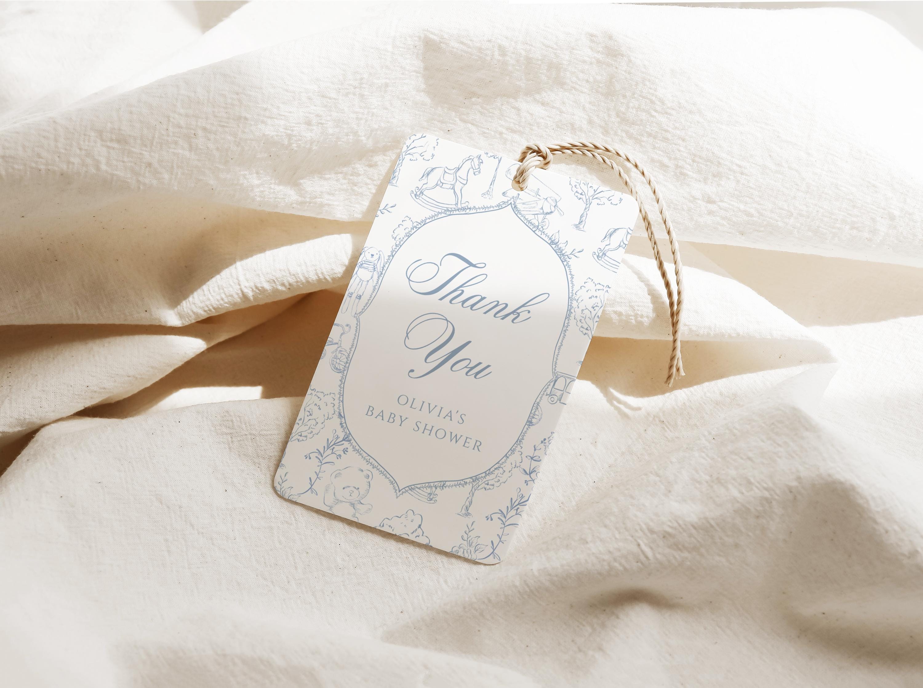 Modello di etichetta per bomboniere per baby shower con motivo Toil...