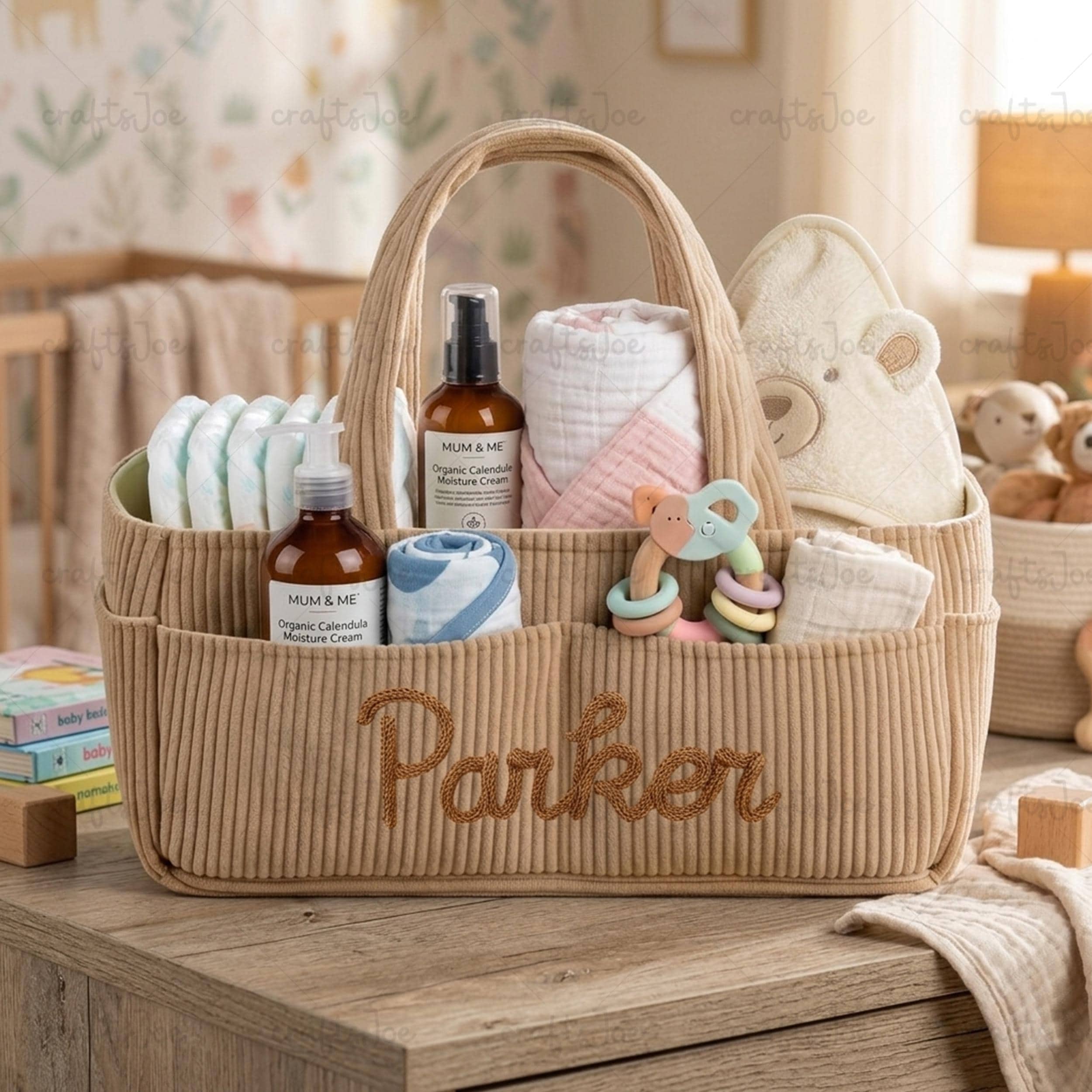 Borsa organizer per pannolini in velluto a coste personalizzata, co...