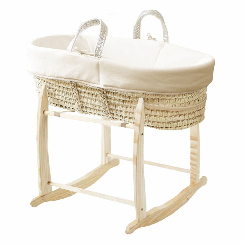 Cesta Porta Bimbo in Cotone Biologico Crema e Supporto in Legno