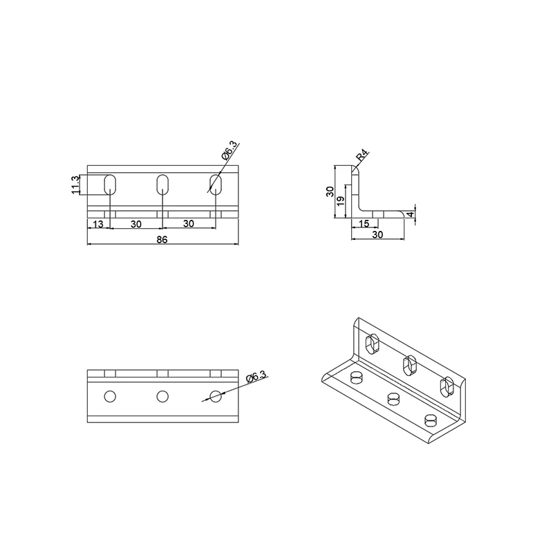 Cina produttore 30*90mm 6201 6 fori scanalati in alluminio Cnc staf...