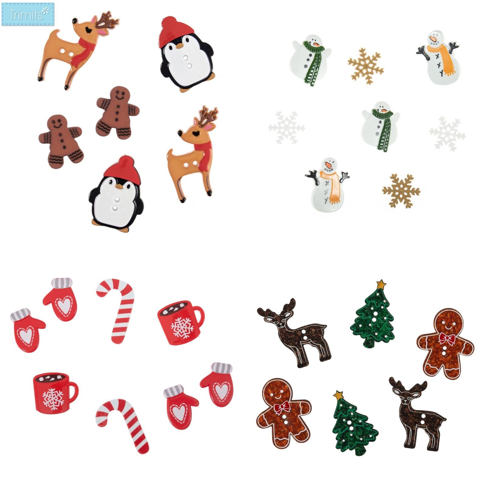 Bottoni Trimits Natale assortiti (confezioni) Renna, pinguino, omino di pan di zenzero Aggiungi un t...