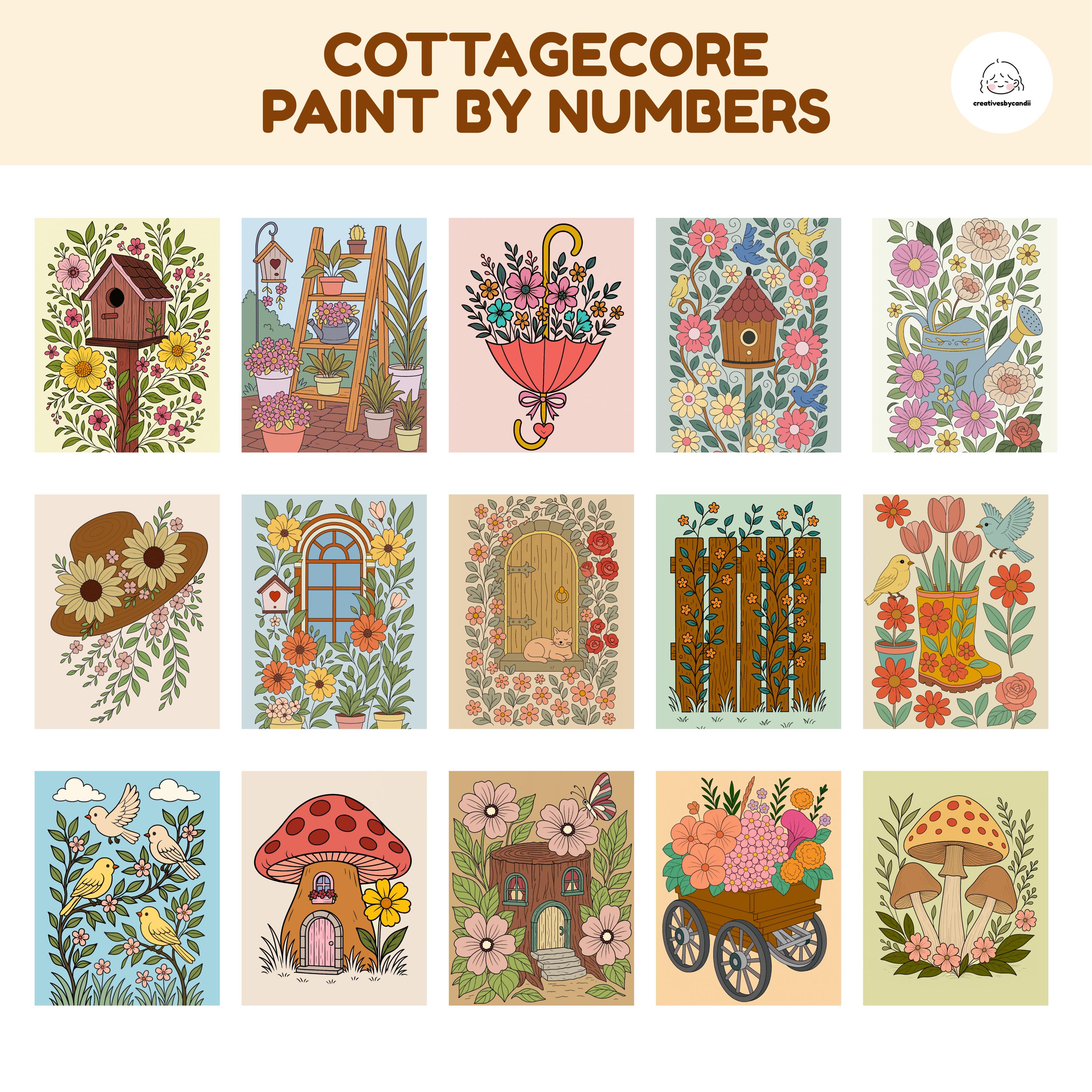 15 disegni da colorare digitali per adulti in stile Cottagecore Vin...