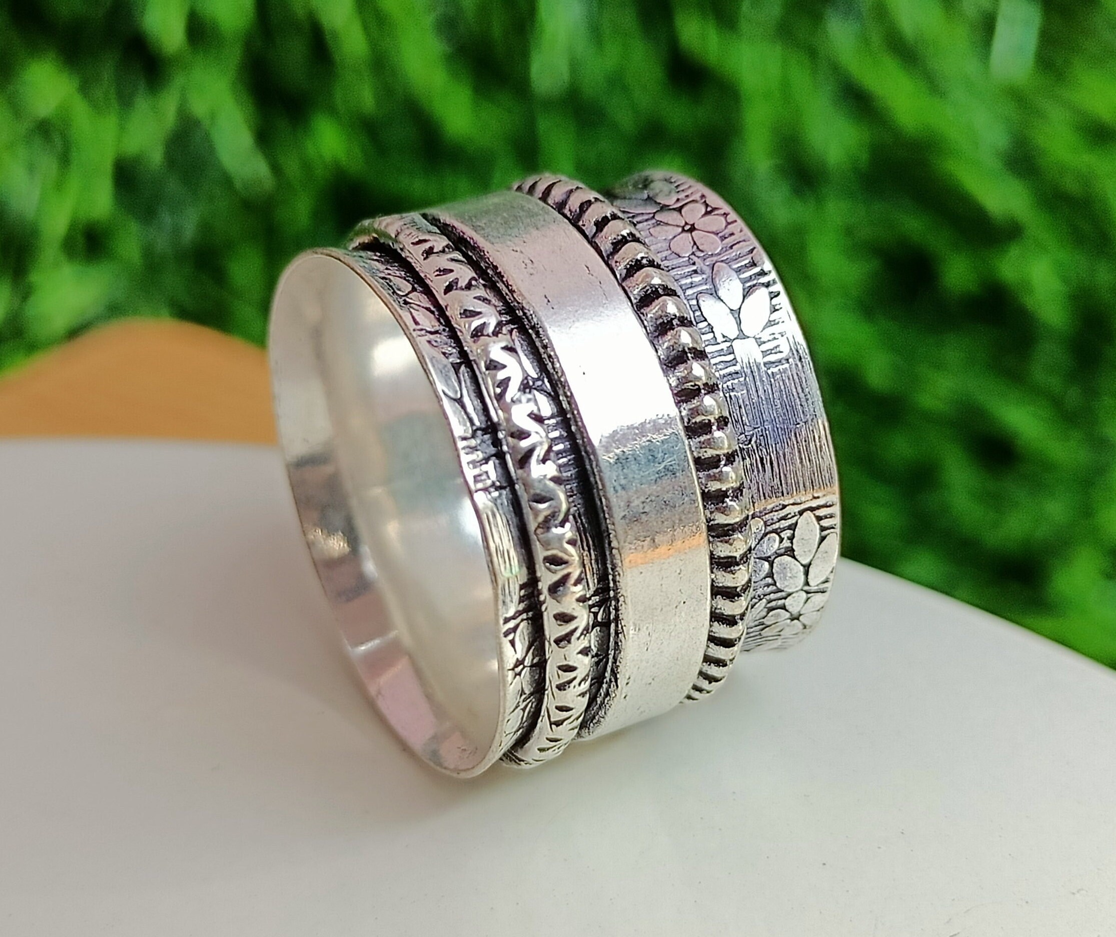 • Boho 92.5 Anello Spinner Band placcato argento, Anello Spinner, Ane...