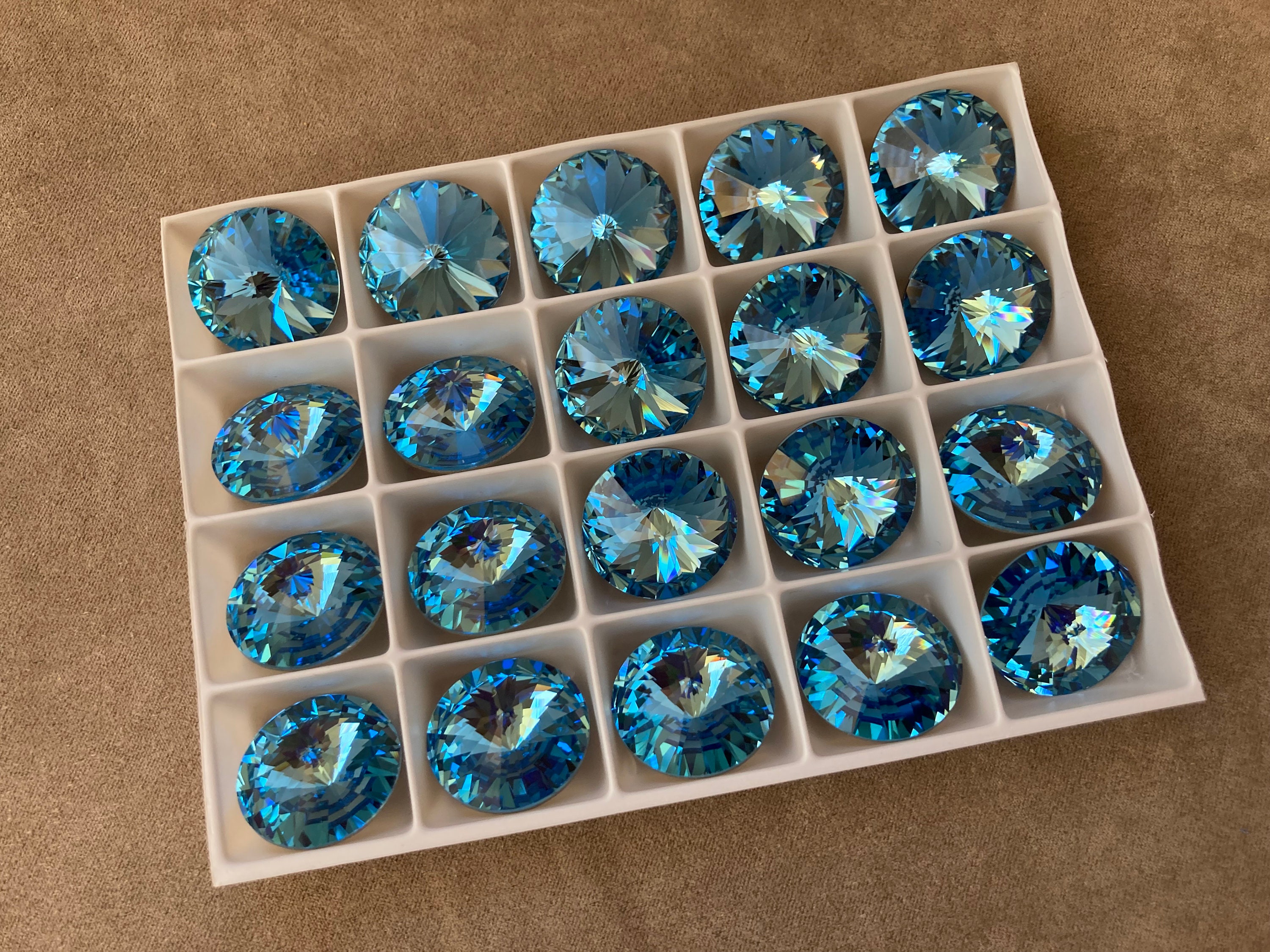 • Swarovski Articolo 1122, Rivoli con lamina color acquamarina, 18 mm...