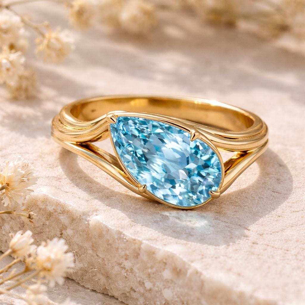 • Anello con acquamarina