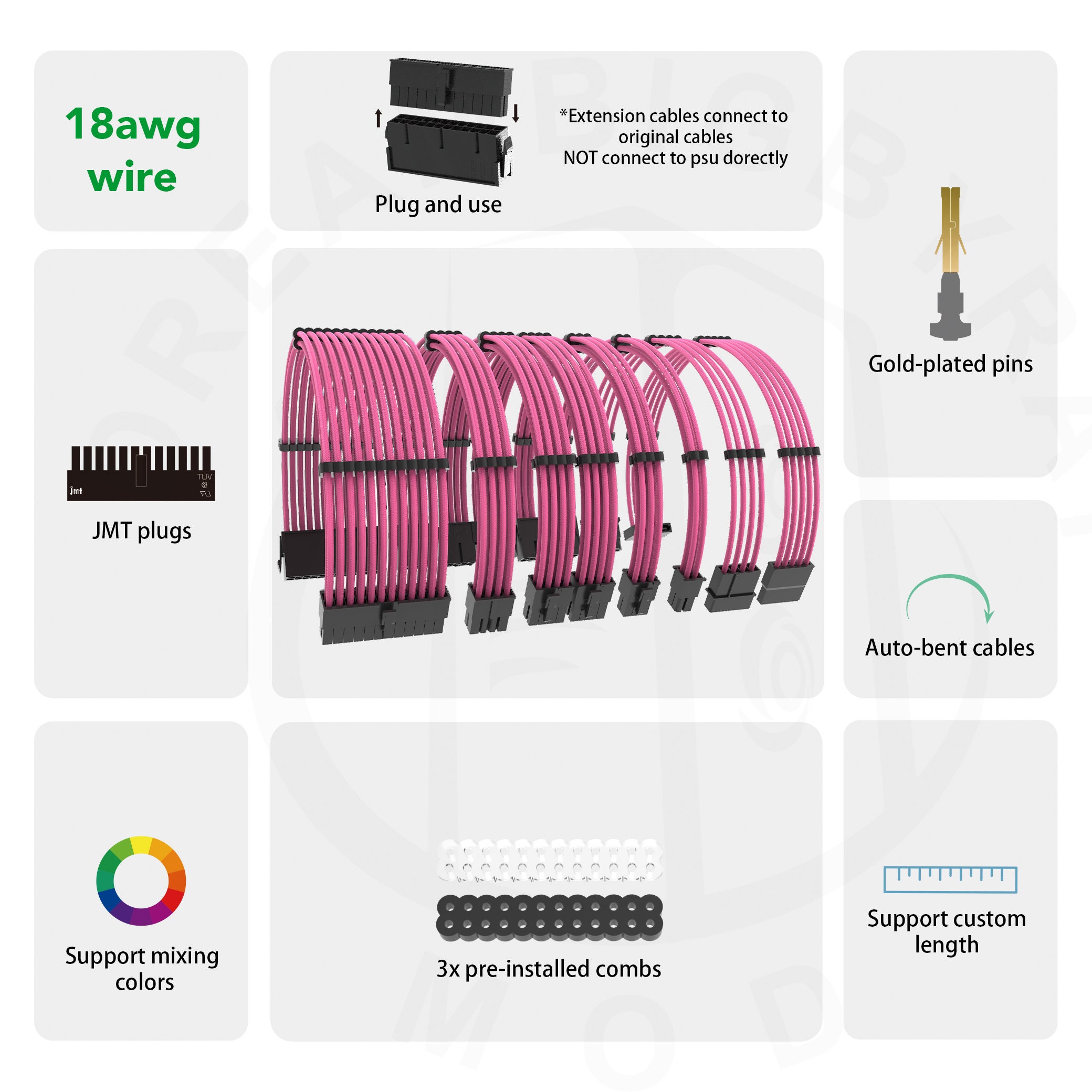 30cm pc psu sleeved cavo di prolunga colore rosa cpu gpu cavo cavo