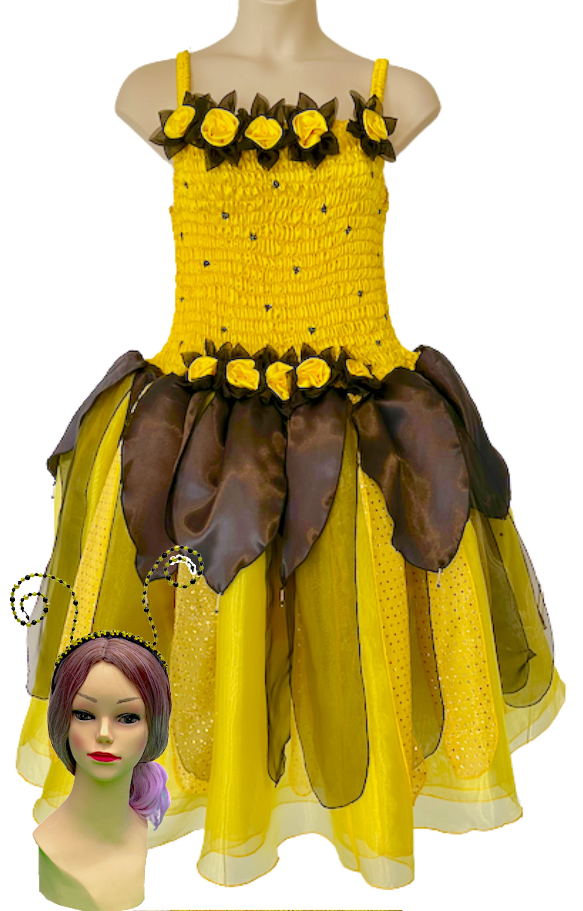 Che adorabile costume da Bumble Bee! Include: :Strati di petali di organza scintillanti neri e giall...