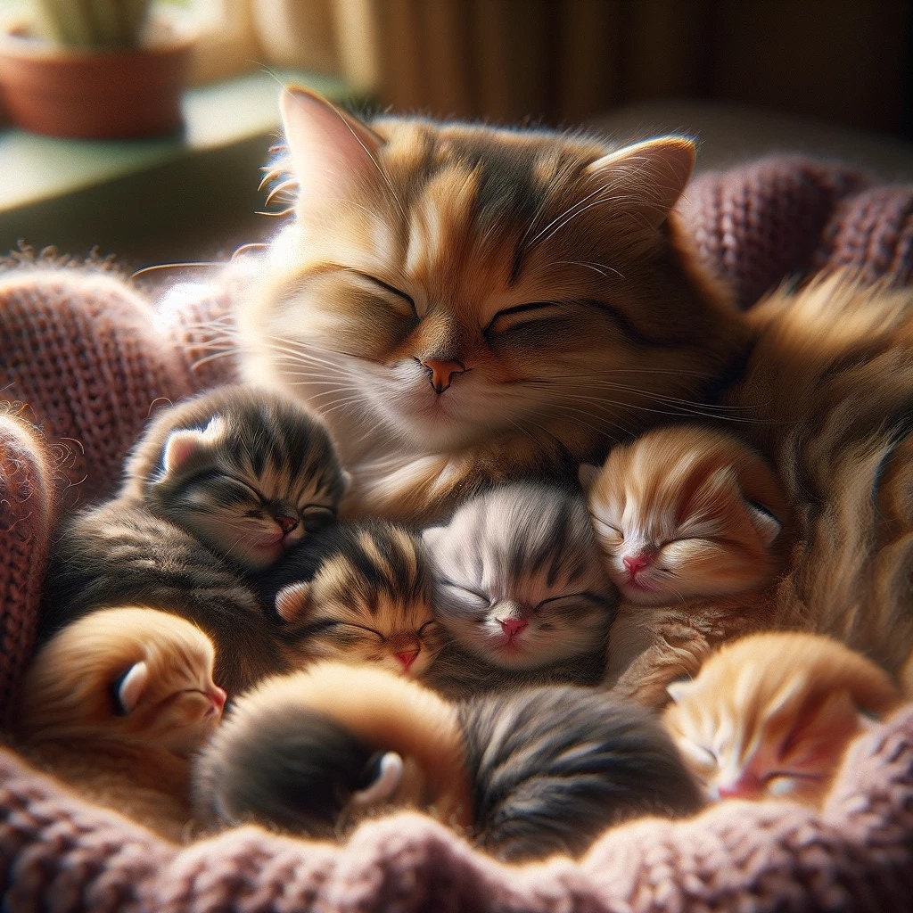 Gattini appena nati 4K rannicchiati con la madre
