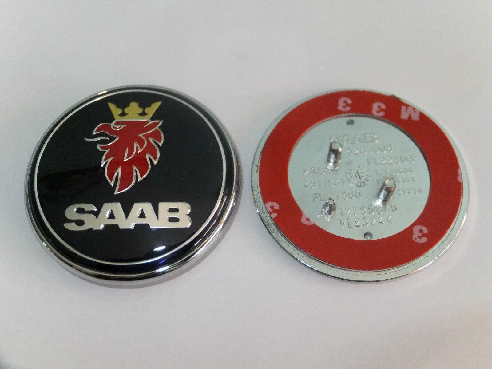 2 x 68 mm SAAB Logo cofano anteriore nero, stemma distintivo bagagliaio posteriore per SAAB 9-3 9-5 ...