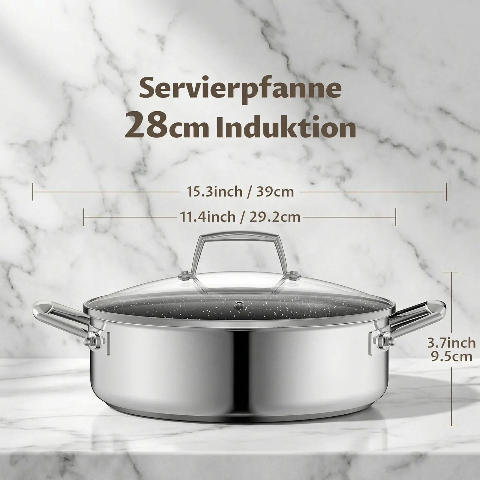 Padella 28 cm con bordo alto, Casseruola con coperchio 5,2 L, Accia...