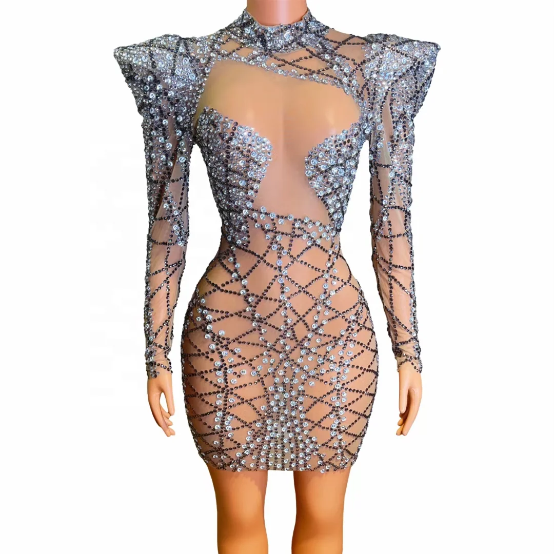 Sexy See Through spalla Pad Crystal Graduation Birthday Slim Fit Dr...