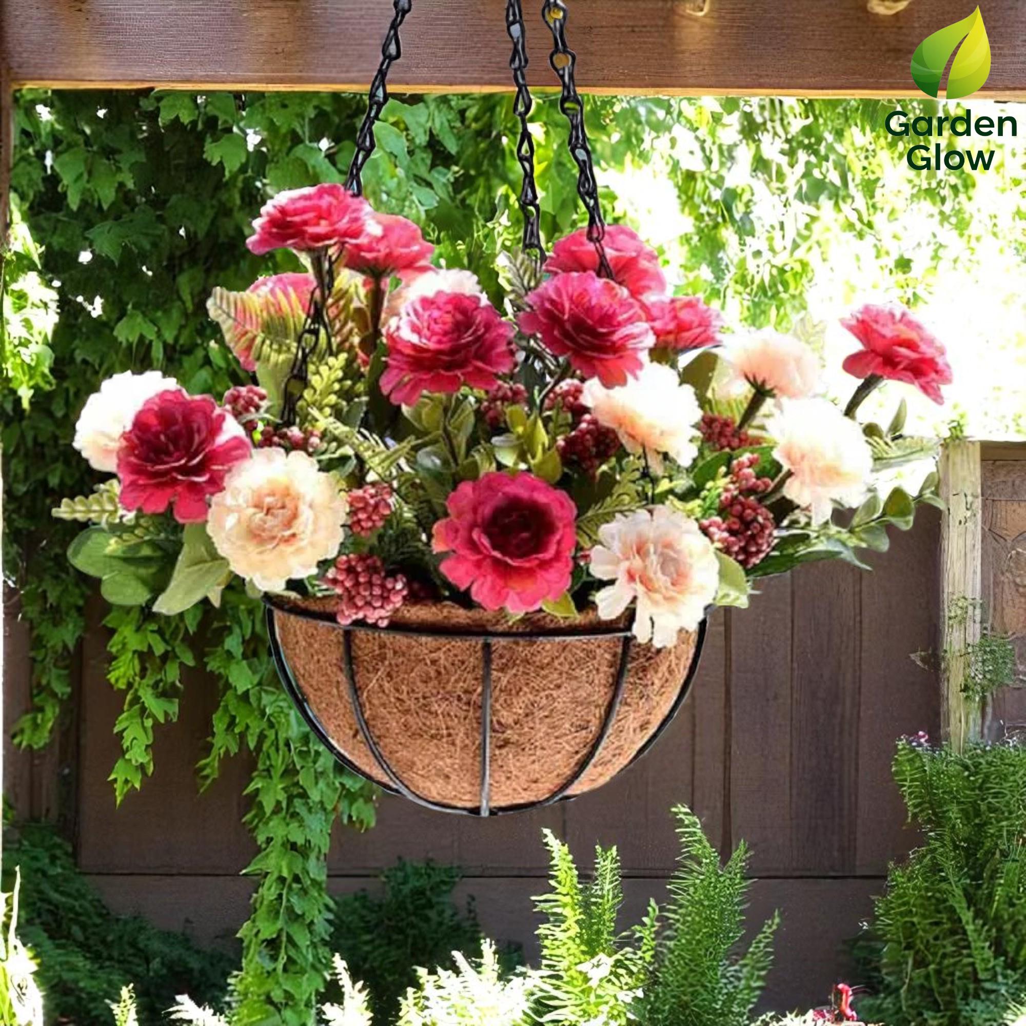 8/10 Inch Hanging Planter with Coconut Liner - Round Metal Flower B...