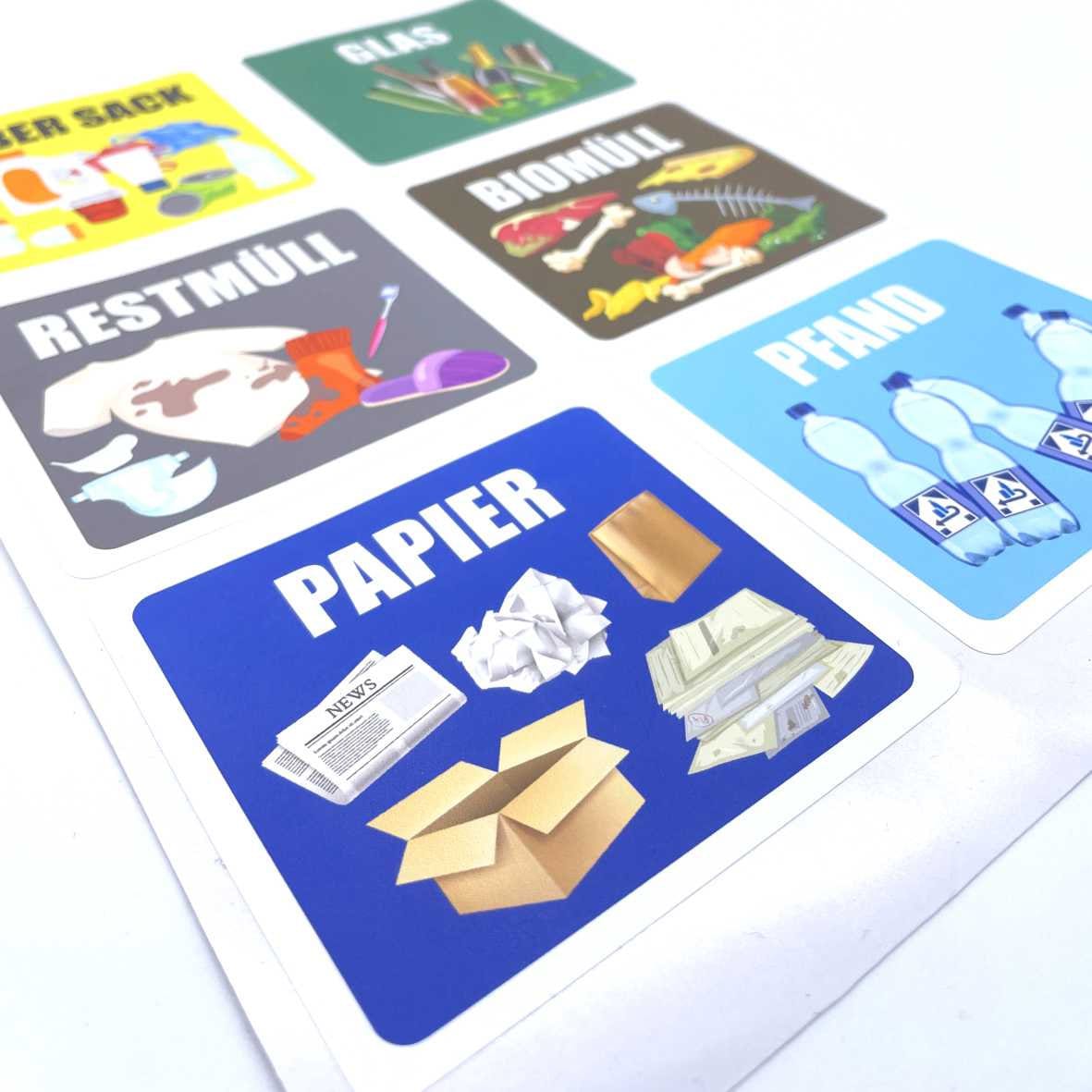 Set di 6 adesivi per la raccolta differenziata, formato 9,8 x 9 cm,...