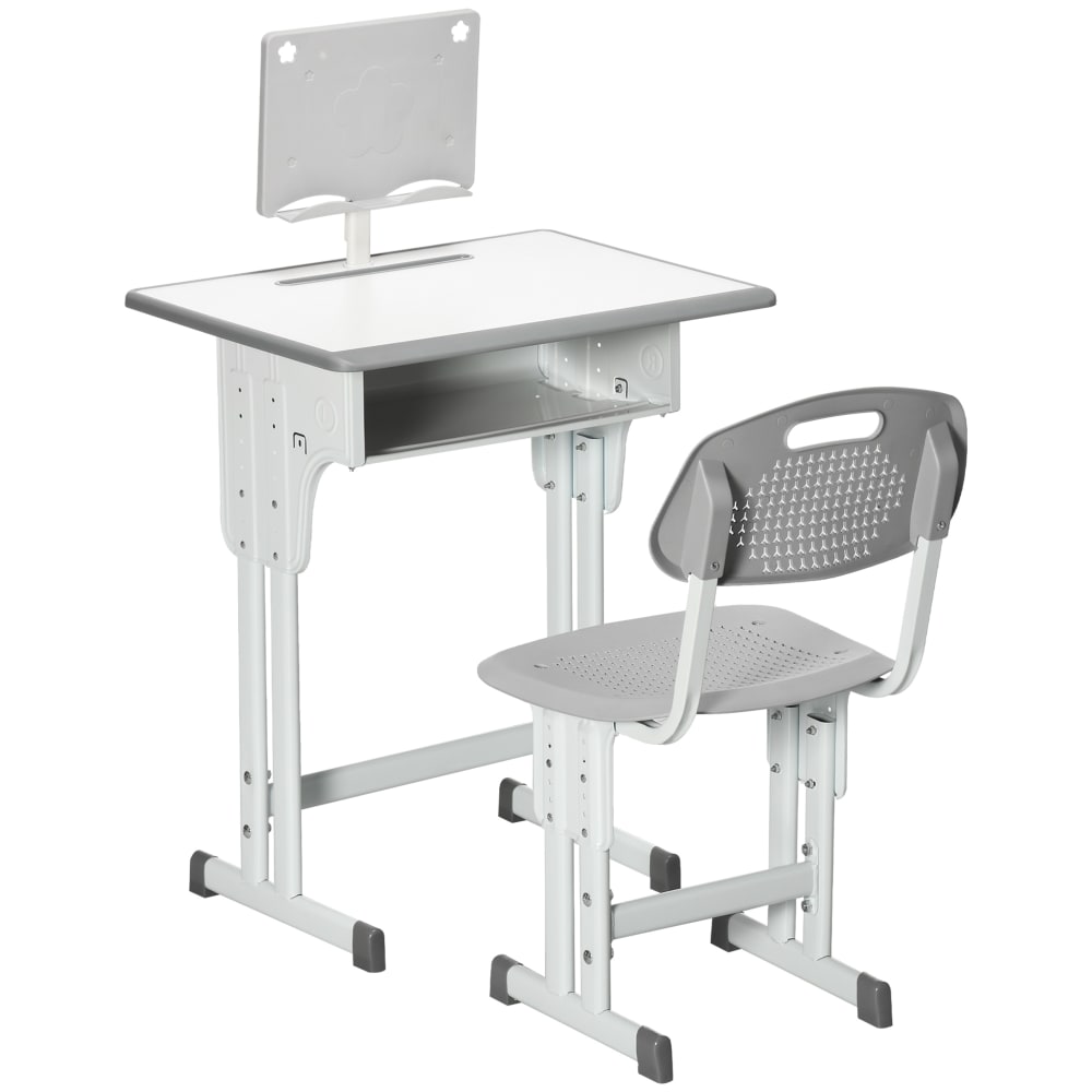 Banco scuola con sedia regolabile età 6-12 anni grigio