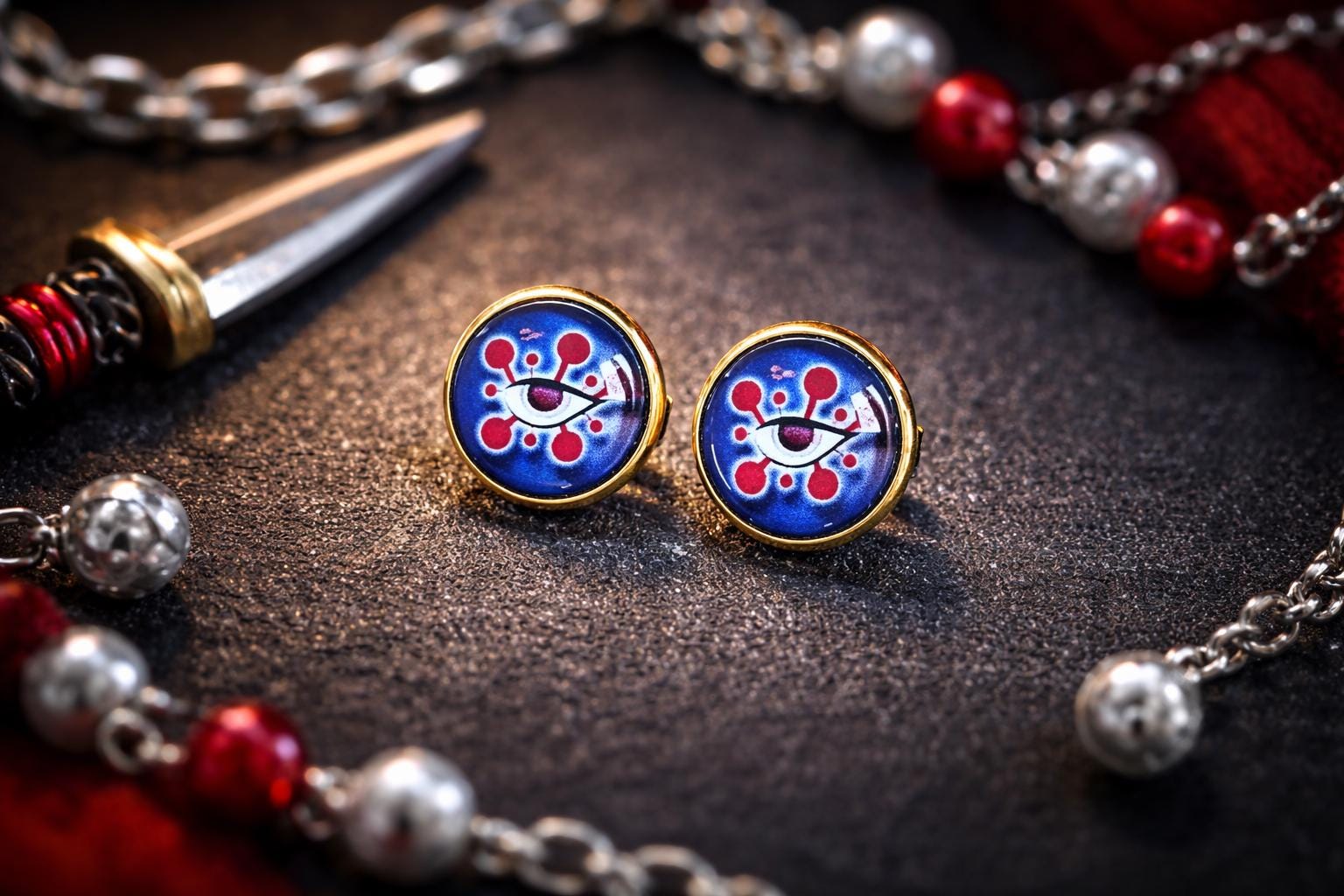 Questi orecchini sono stati progettati per rappresentare gli occhi e il grado del Demone della Luna ...