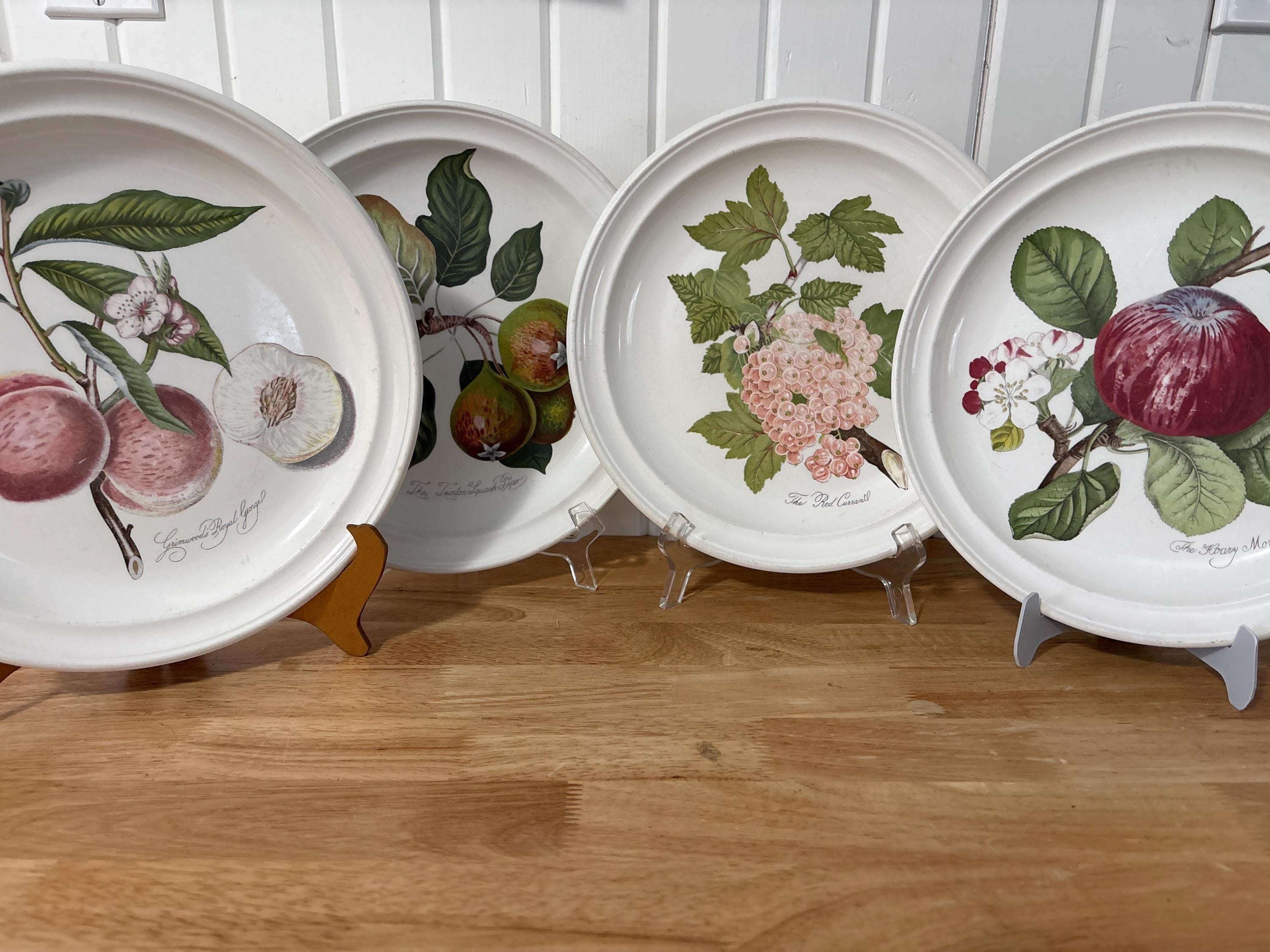 Portmeirion, Pomona, piatti piani, set da 4. Frutta e fiori, sfondo bianco. Fuori produzione. 1983 -...