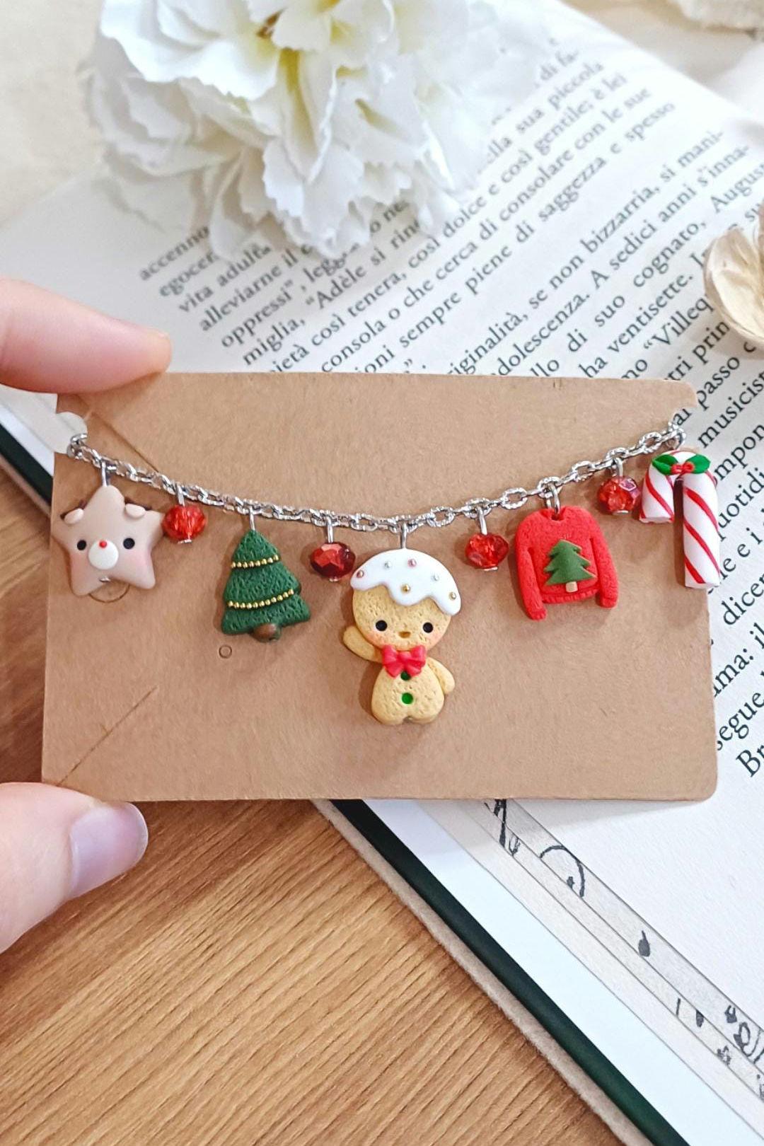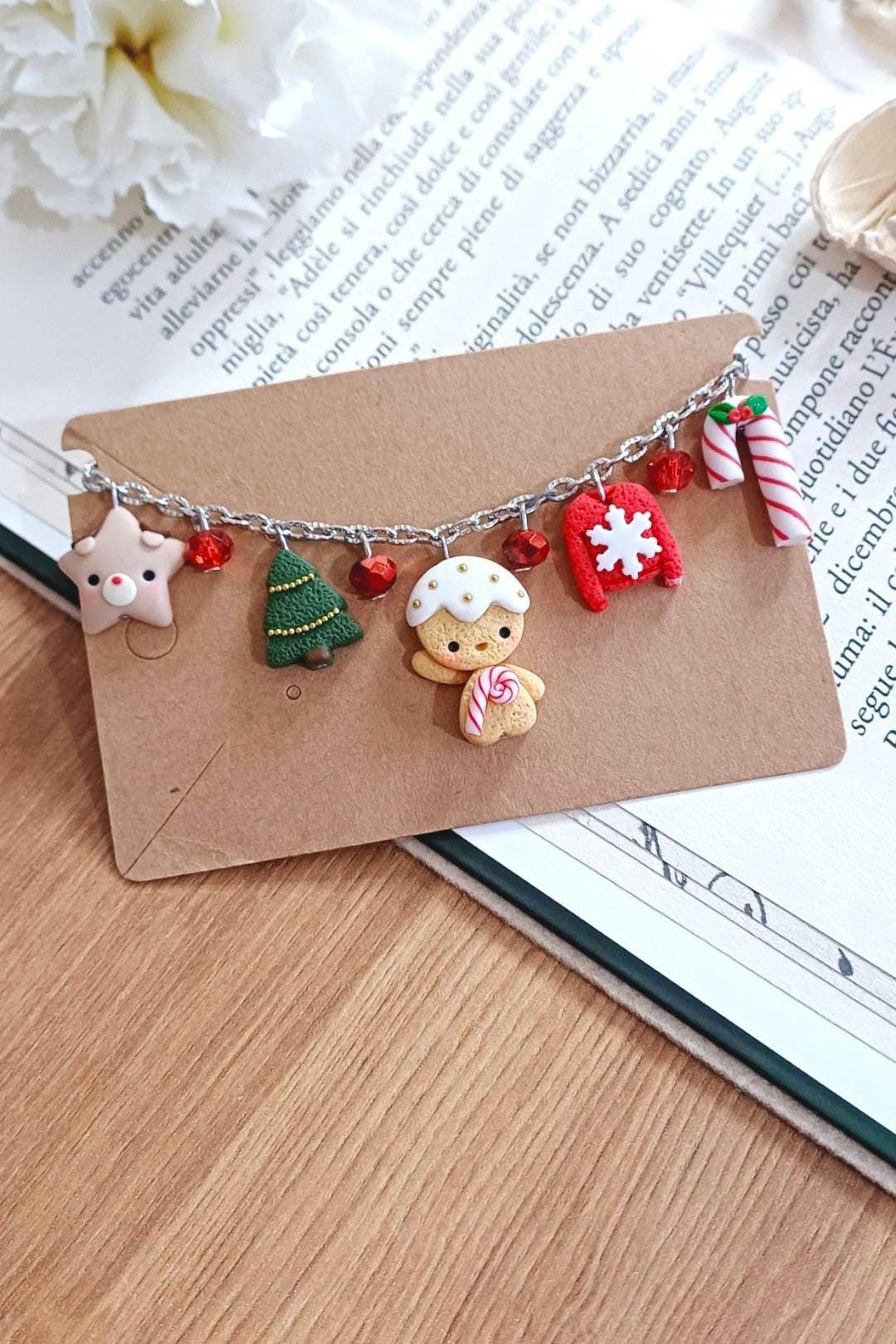 Christmas Holiday Bracelet Polymer Clay, Minimalist Gingerbread Man...