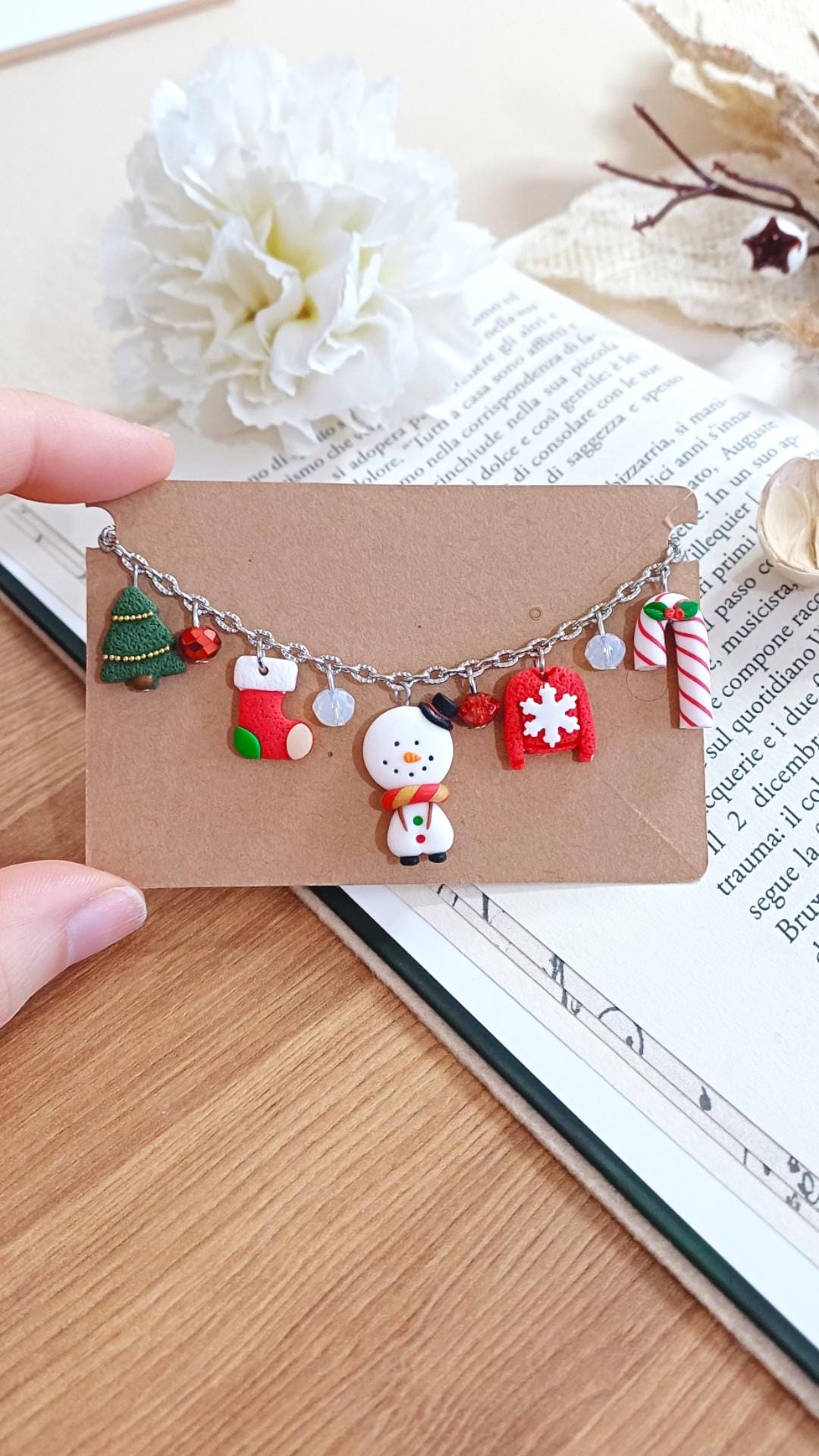 Christmas Holiday Bracelet Polymer Clay, Minimalist Snow Man Jewelr...