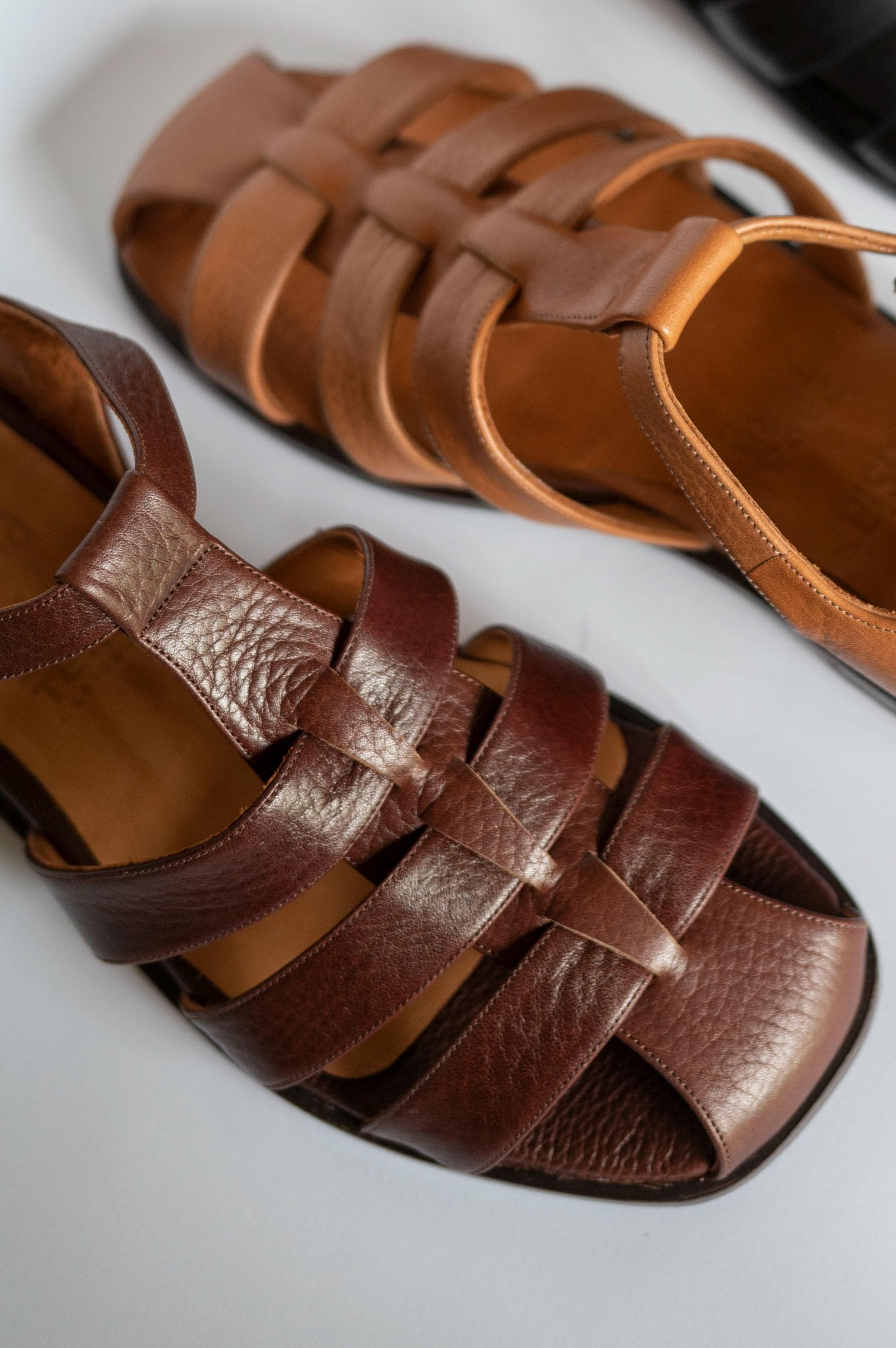 Sandali da pescatore in pelle, realizzati a mano in pelle pieno fiore conciata al vegetale, questi s...
