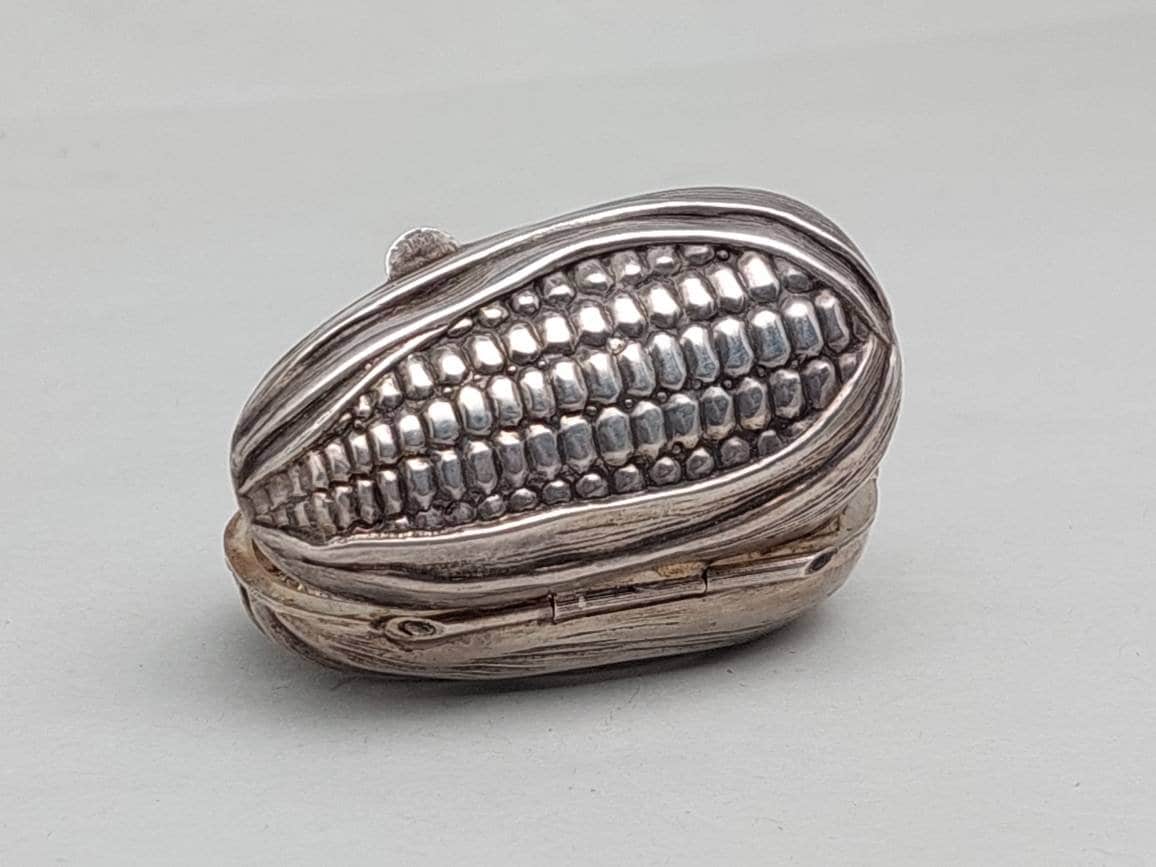Bellissimo portapillole antico a forma di pannocchia di mais monogramma Massa 5,1x3 cm Altezza ca ma...