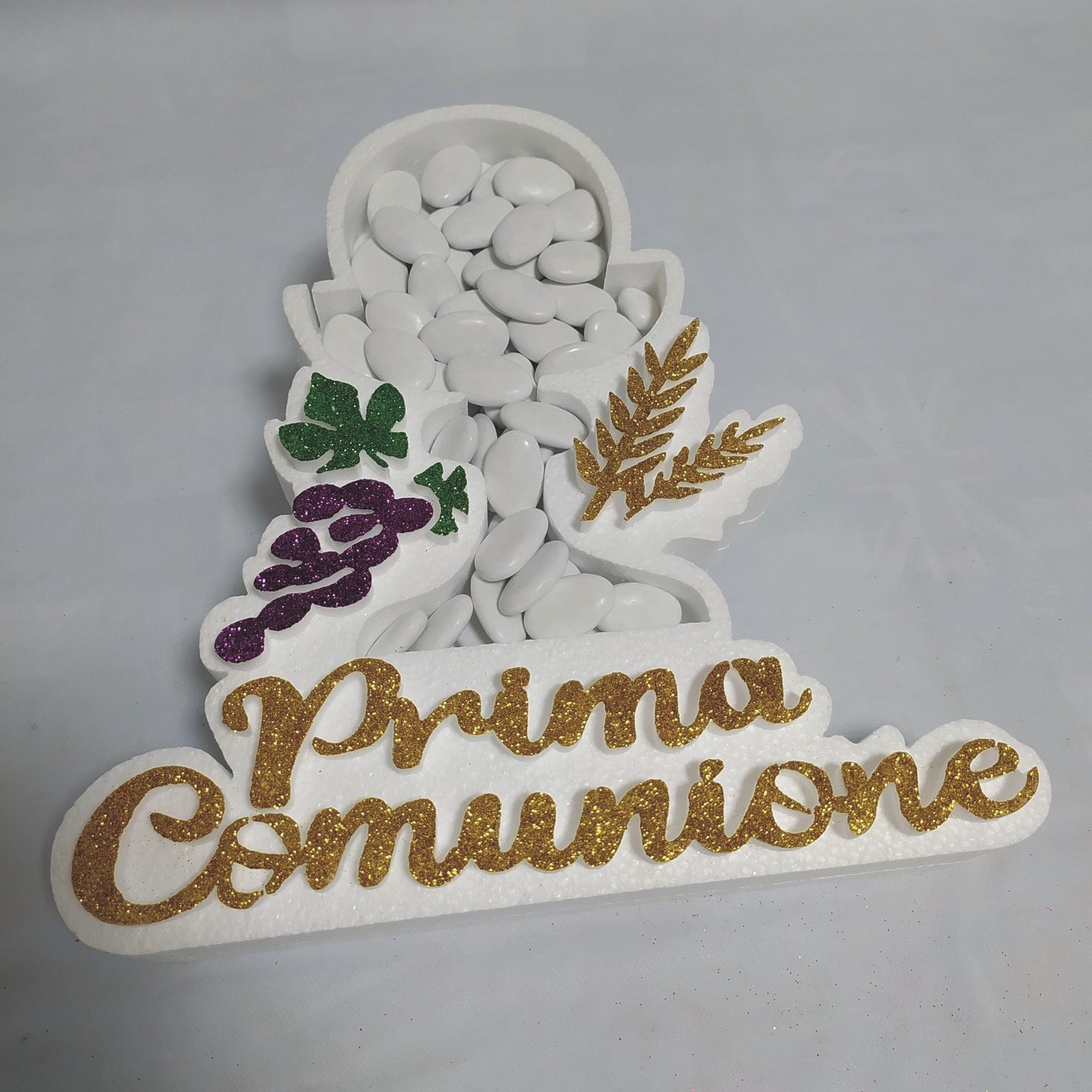 Porta Confetti Calice Prima Comunione e Scritta Ccentrotavolo in Polistirolo 2 in 1 misure 35 x 25 x...