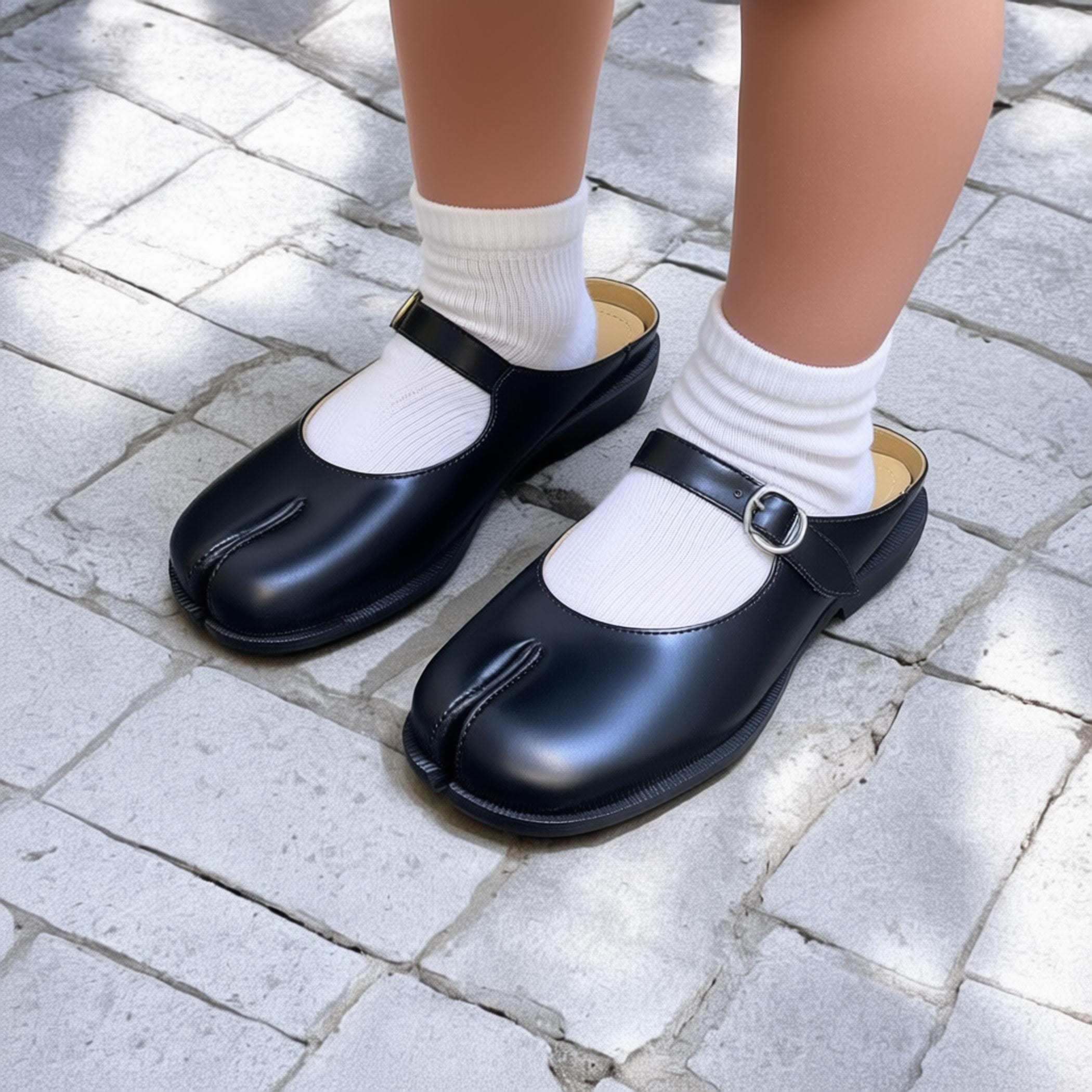 Mules Tabi in vera pelle / Mary Jane con punta divisa, stile giappo...