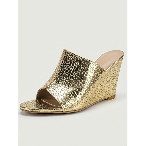 mules con zeppa metallizzata color oro da donna, scarpe slip-on con...