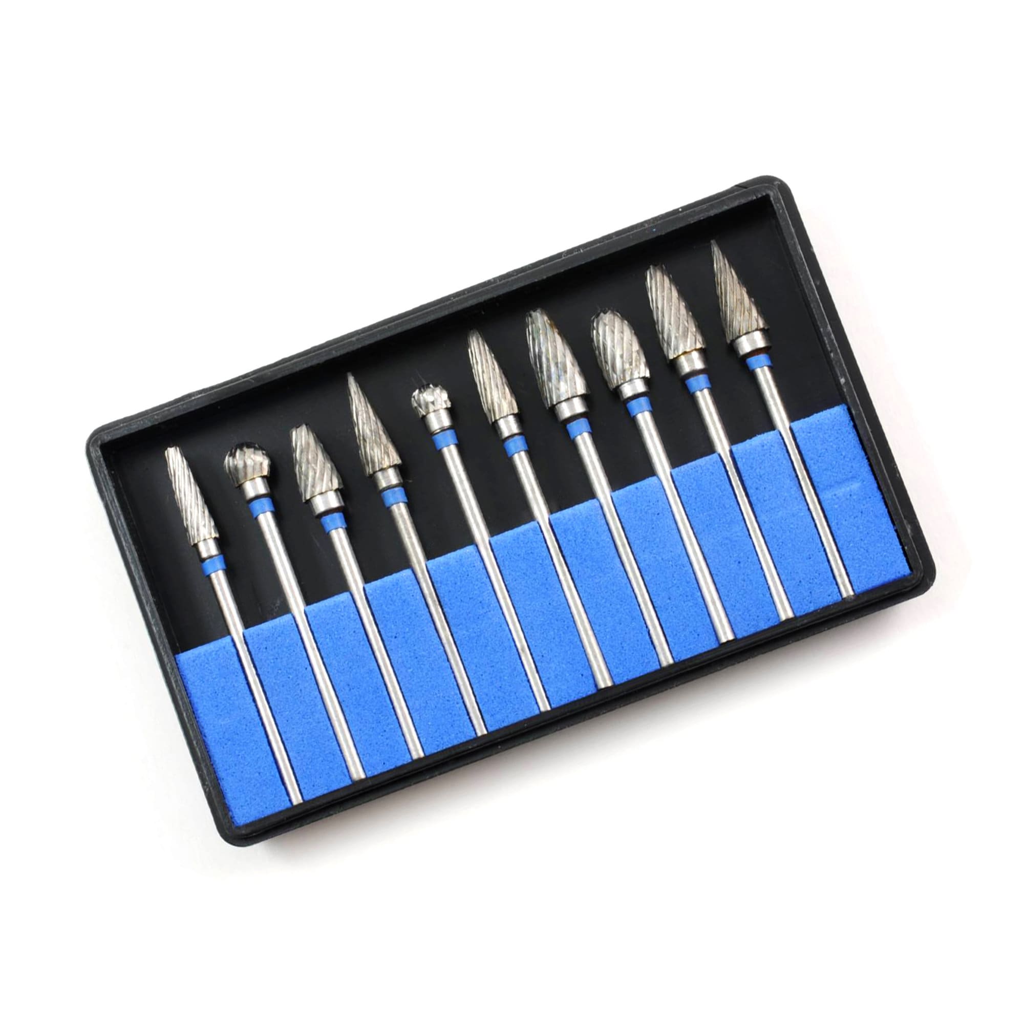 • Set di 10 frese assortite in carburo di tungsteno con gambo da 2,3 ...