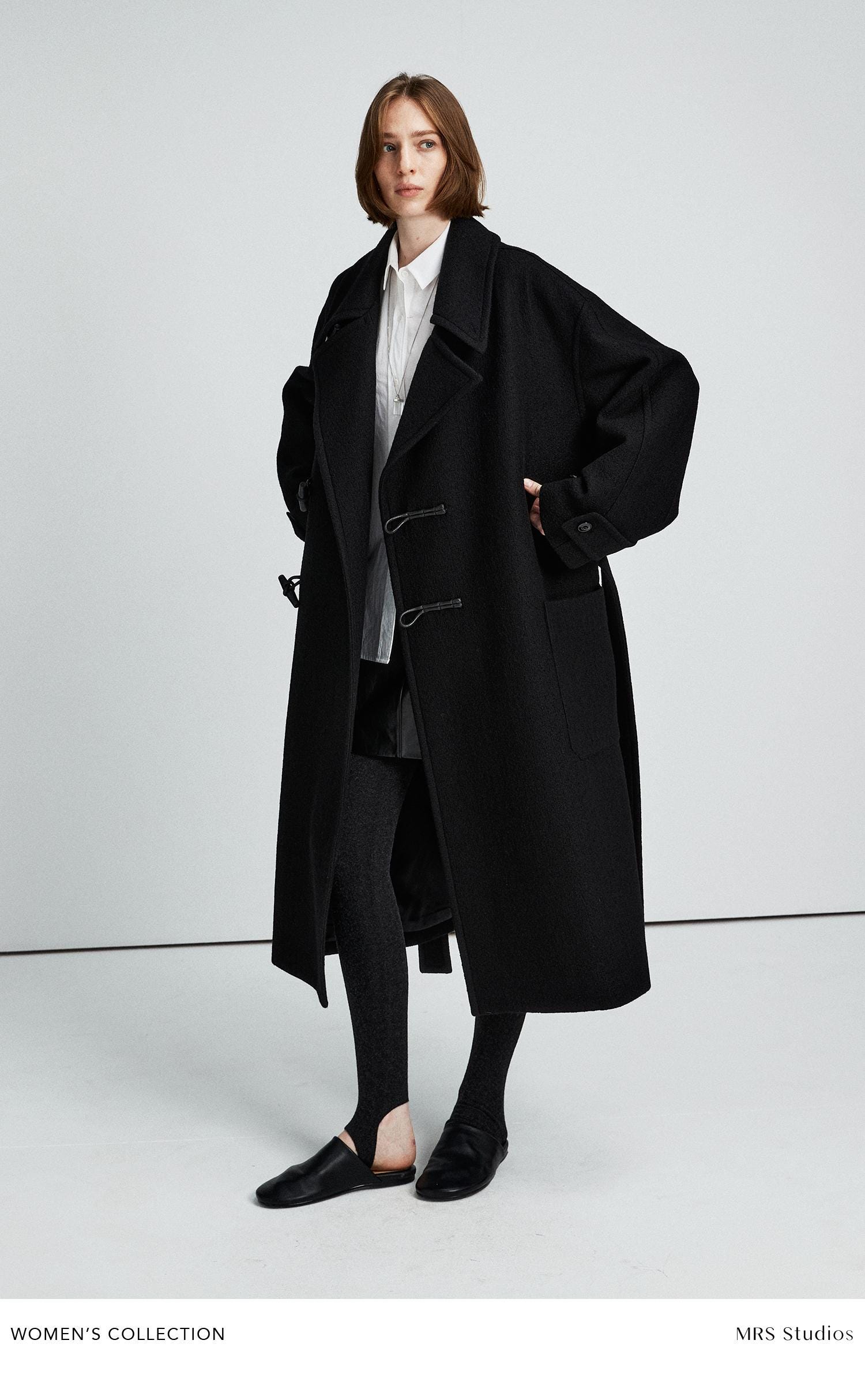 Rompendo con le convenzioni tradizionali del cappotto alamari, questo cappotto asimmetrico in lana c...