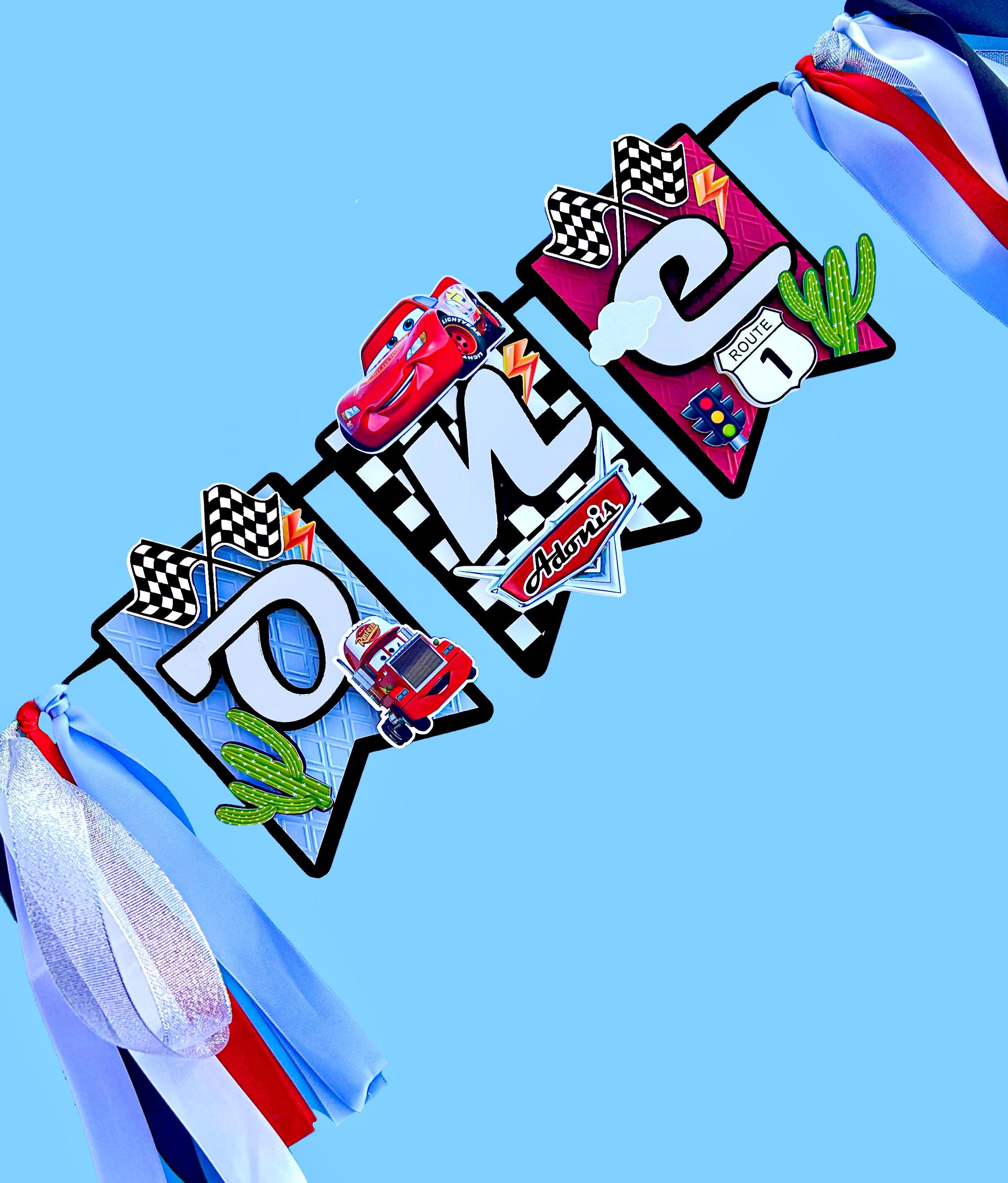 Striscione per seggiolone Cars, striscione Cars ONE, primo complean...
