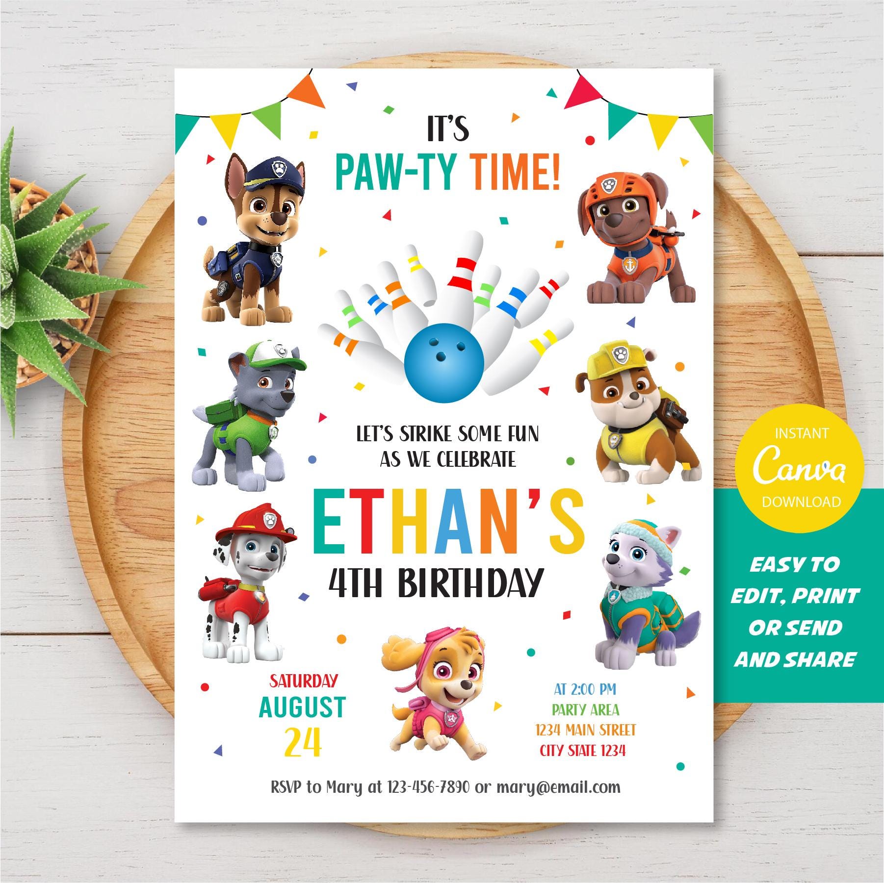 Invito modificabile per il bowling Puppy Paw-ty, invito per il comp...