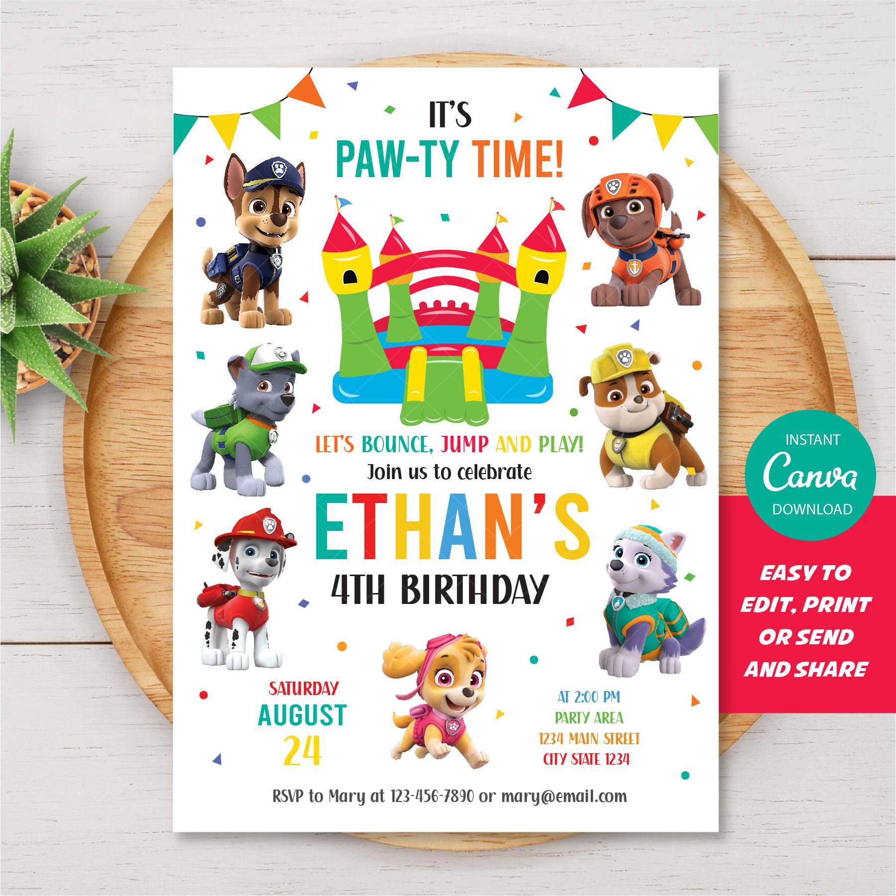 Invito modificabile per castello gonfiabile Puppy Paw-ty, invito di...