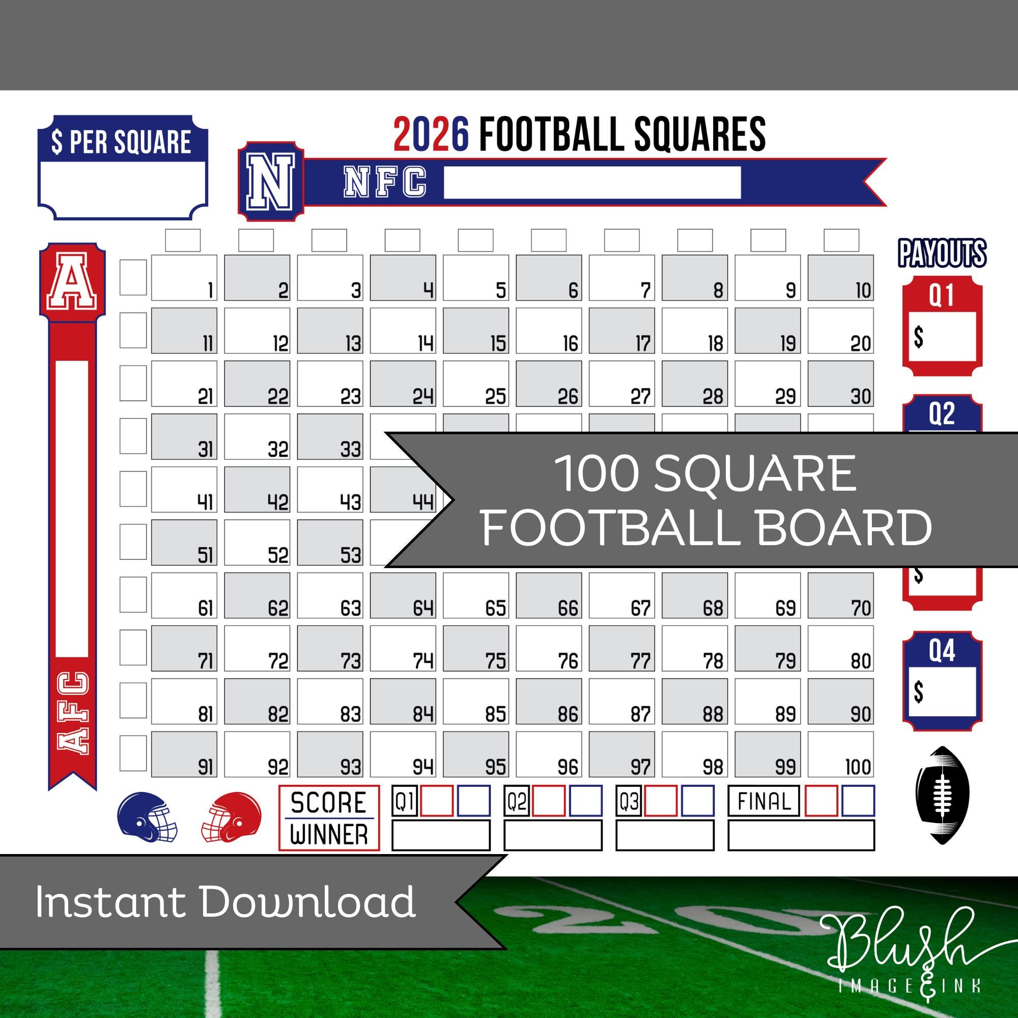 100 quadrati del Super Football Bowl Griglia del pool di football Stampabile Download digitale istan...